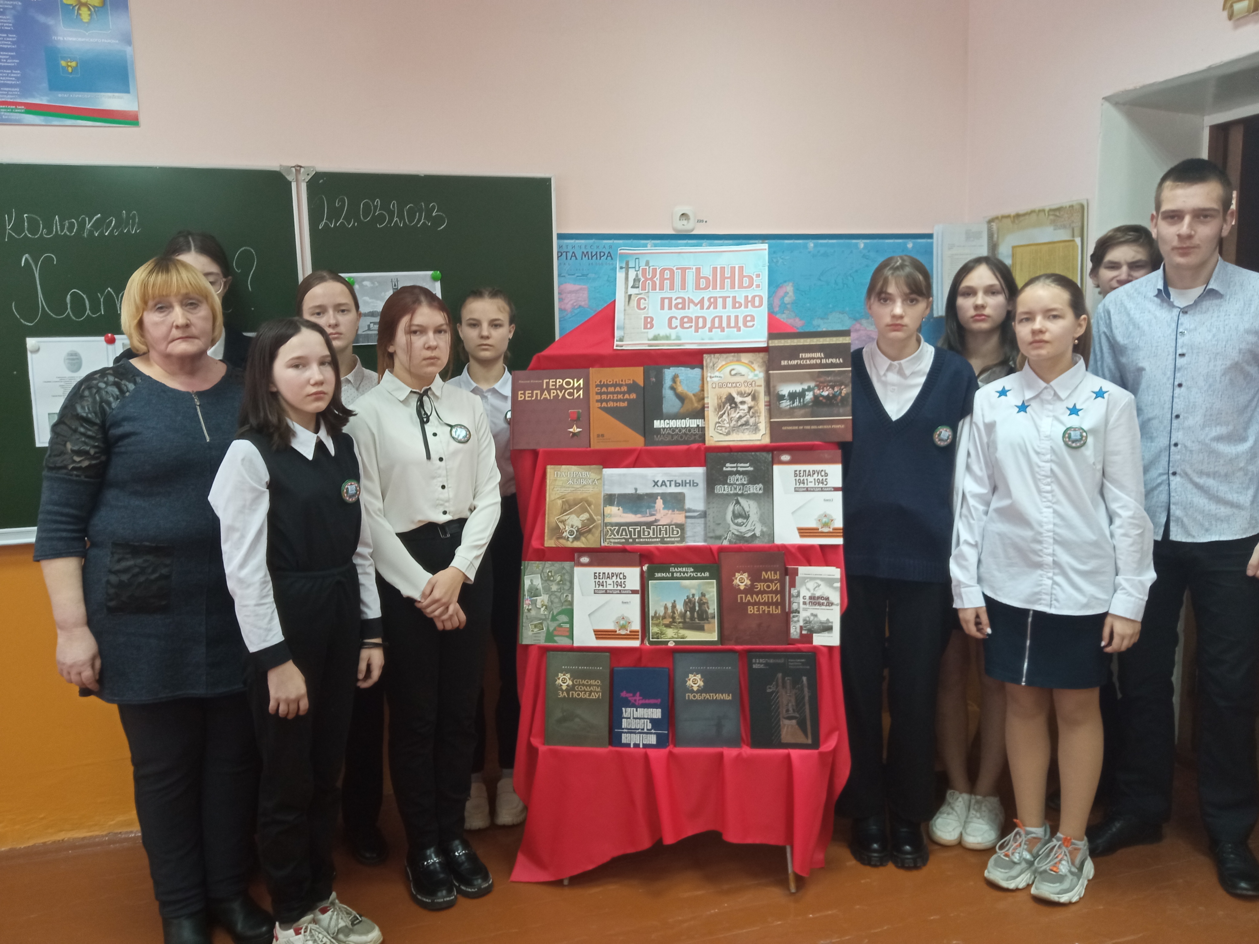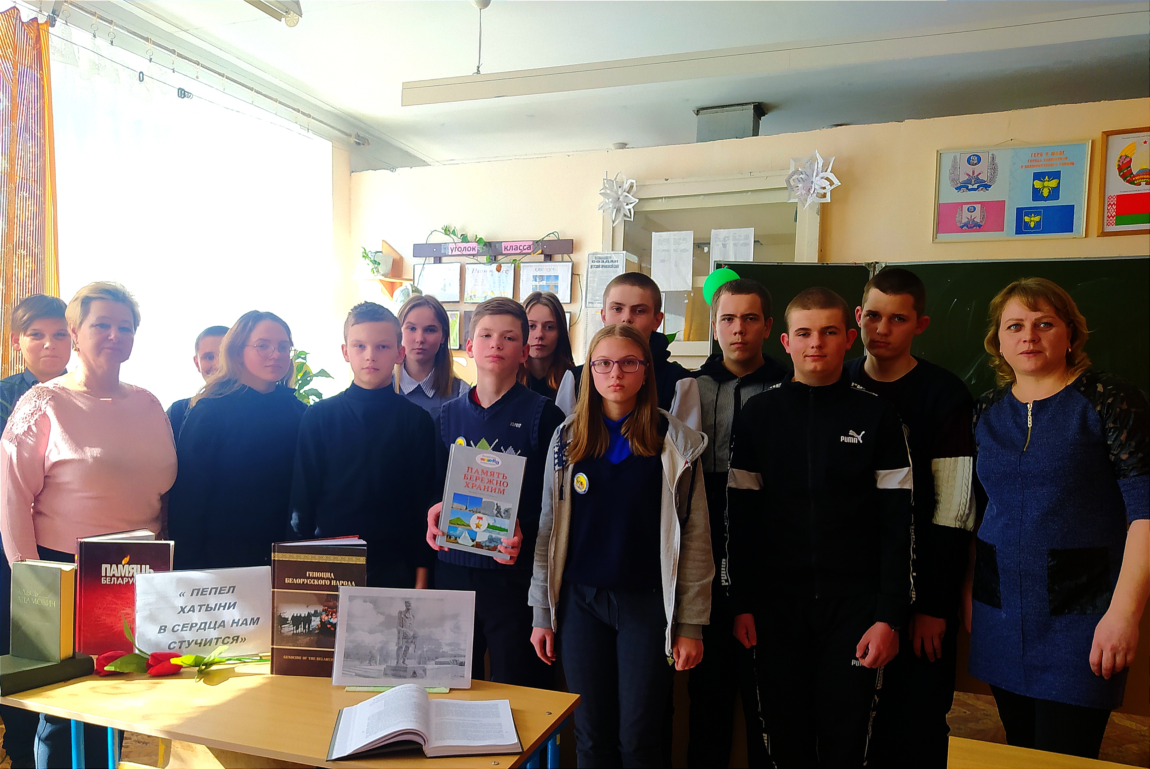 Сотрудники Тимоновской сельской библиотеки совместно с районным краеведческим музея провели для учащихся 7-го класса час памяти «Хатынь – вечный символ памяти и скорби». Сотрудник музея Наталья Банышевская рассказала о сожженных деревнях Климовичского района, таких как Карпачи, Набат, Дыдино, Тимоново и другие.