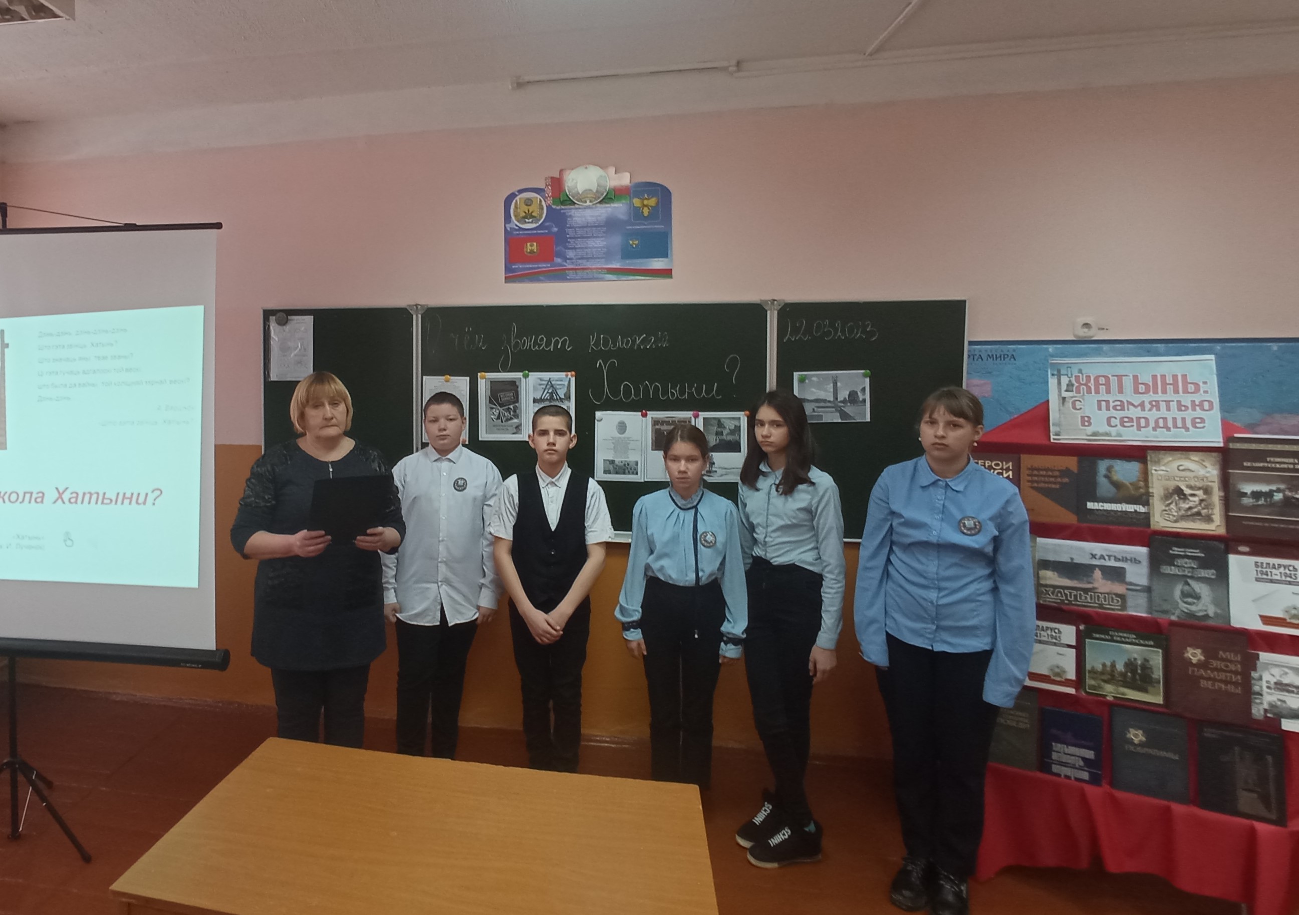 Для учащихся старших классов средней школы №4 сотрудники городской библиотеки №1 подготовили историко-поэтическую композицию «Звонят тревожно в Хатыни колокола...». Ребятам рассказали историю трагедии деревни Хатынь, которая стала символом безмерных испытаний белорусов.