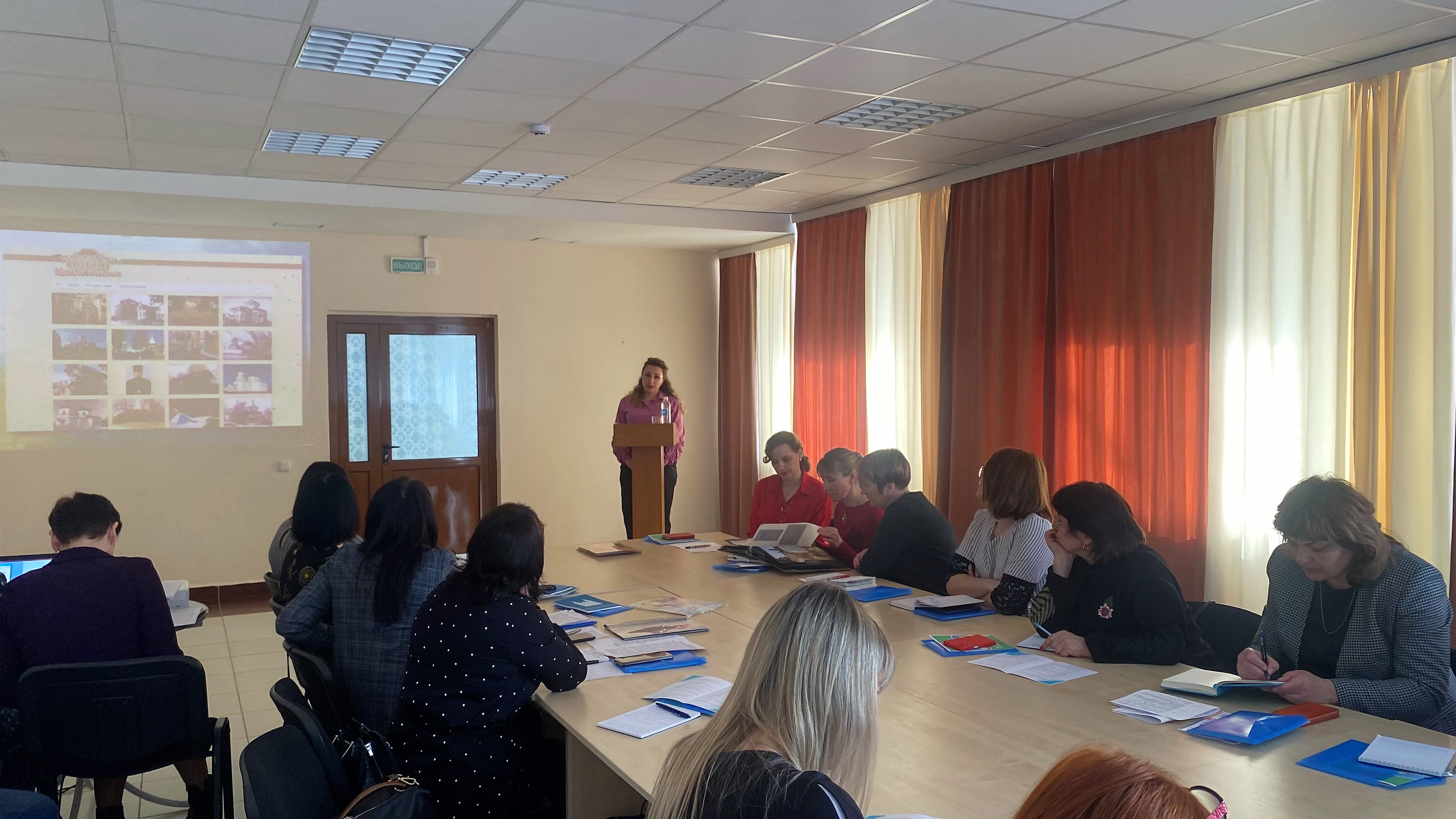 С докладом о деятельности Климовичской библиотечной сети по духовно-нравственному воспитанию и просвещению «Дорогой Православия» выступила заместитель директора Юлианна Клименкова.
