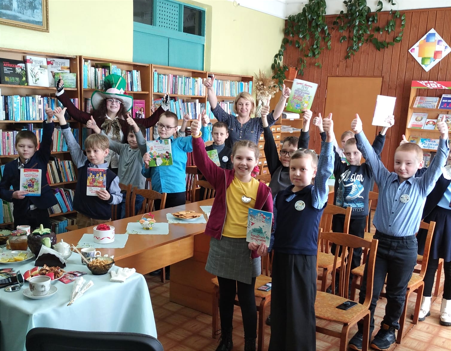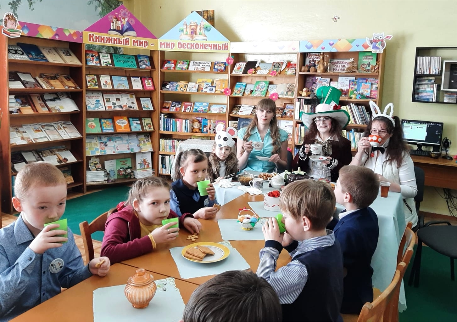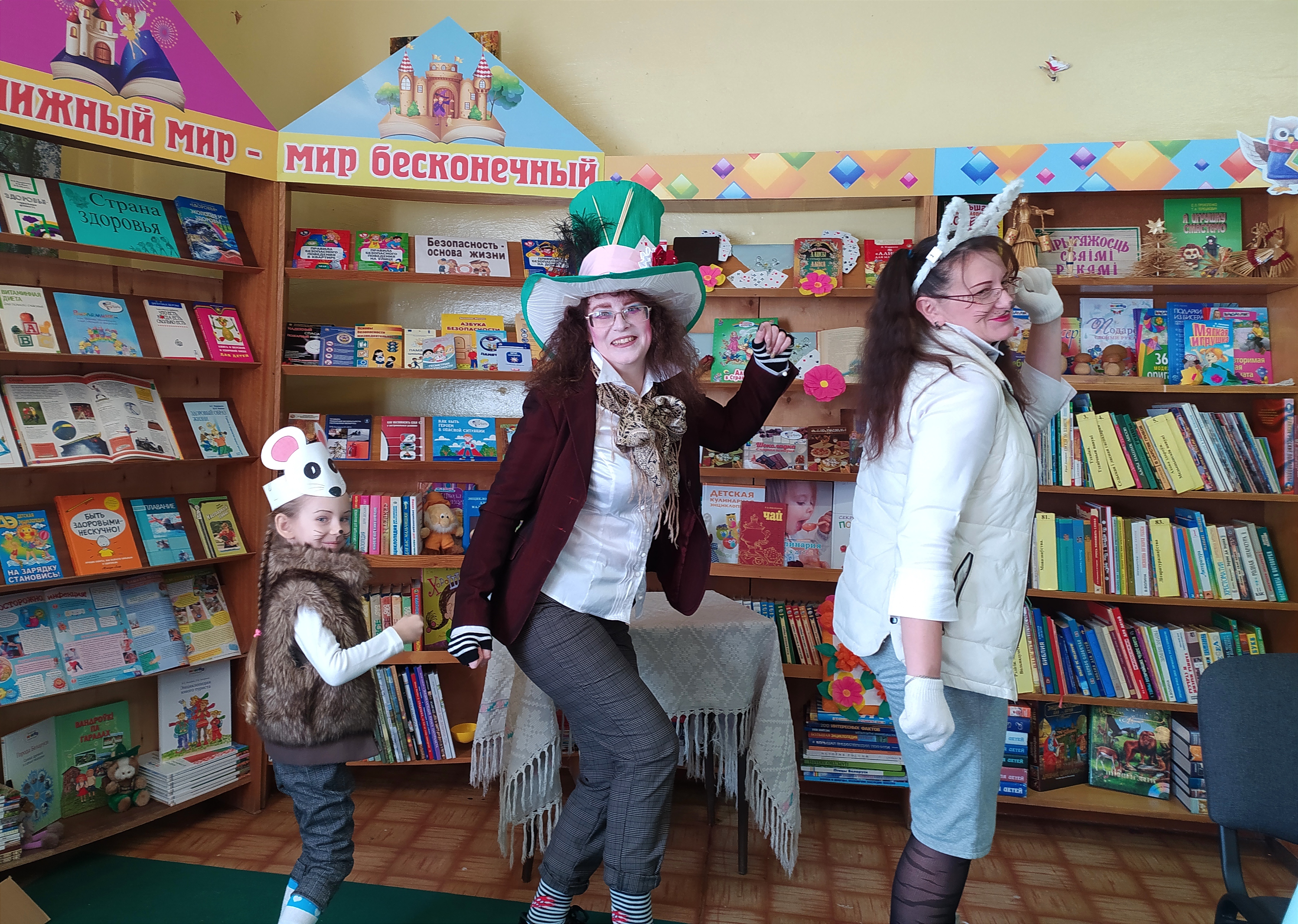 Учащихся начальных классов средней школы №4 сотрудники городской библиотеки №1 пригласили на сказочную феерию «В гостях у Мартовского кролика» по мотивам книги Льюиса Кэрролла «Алиса в стране чудес». Гостей библиотеки встретили сказочные герои – Шляпник, Алиса, Кролик и Мышь Соня, которые вместе с ребятами принимали участие во всех играх и конкурсах: «Крокет», «Съешь меня, выпей меня и угадай», «Часики» и другие. Веселый Шляпник не только загадывал загадки, но и предложил станцевать «Джигу-дрыгу», а Алиса рассказала о культуре чаепития в разных странах.