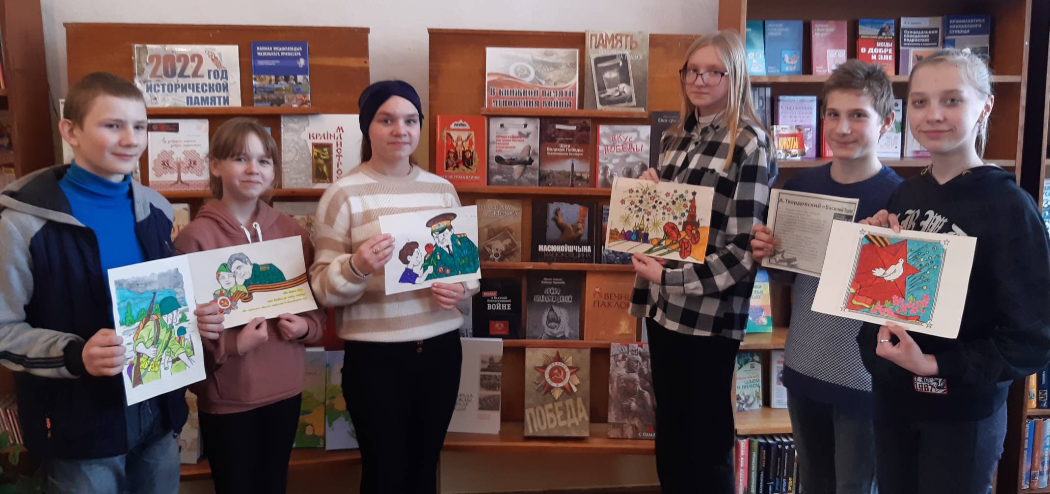 Библиотекарь Родненской сельской библиотеки для учащихся 8-х классов провела день мужества и славы «Мы эту дату в сердце носим». Ребята вспомнили о том, как началась война, о героизме, мужестве и стойкости советских людей в годы войны. Учащиеся принесли в дар библиотеке свои рисунки, посвящённые Дню Победы.
