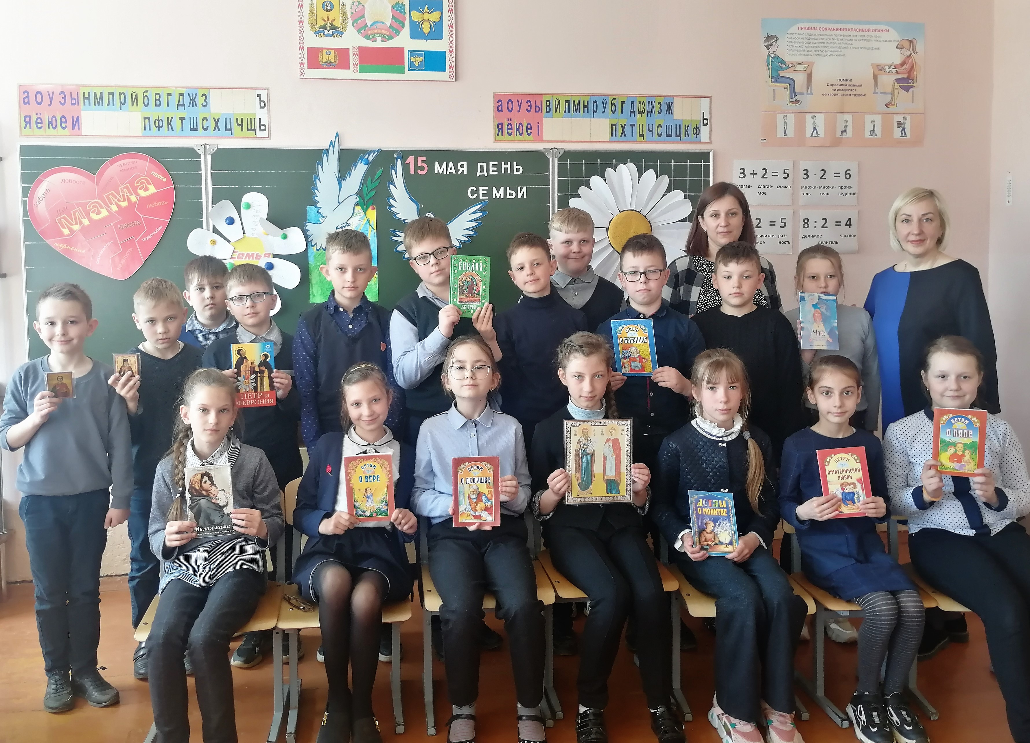 Встреча с учащимися 3 класса районной гимназии прошла на тему «Уроки Добротолюбия». Отец Сергий пояснил ребятам, как должна проходить наша ежедневная жизнь в семье, церкви, в школе. Сотрудники центральной районной библиотеки провели час душеполезного чтения «Увлекательный мир православной книги», познакомили ребят с православной литературой для детей.В рамках проведения республиканской акции «Судьба моей семьи в истории страны» в 4 классах УО «Климовичская районная государственная гимназия имени И.С. Николаева» проведён единый урок «Все начинается с семьи». Ребята говорили о семье, о семейных ценностях, об отношениях между членами семьи, о правах и обязанностях детей в семье. Дети составляли словесный портрет своей семьи, вспоминали о традициях в своей семье. Библиотекарь рассказала об истории любви святых Петра и Февронии Муромских, которых принято считать покровителями брака.