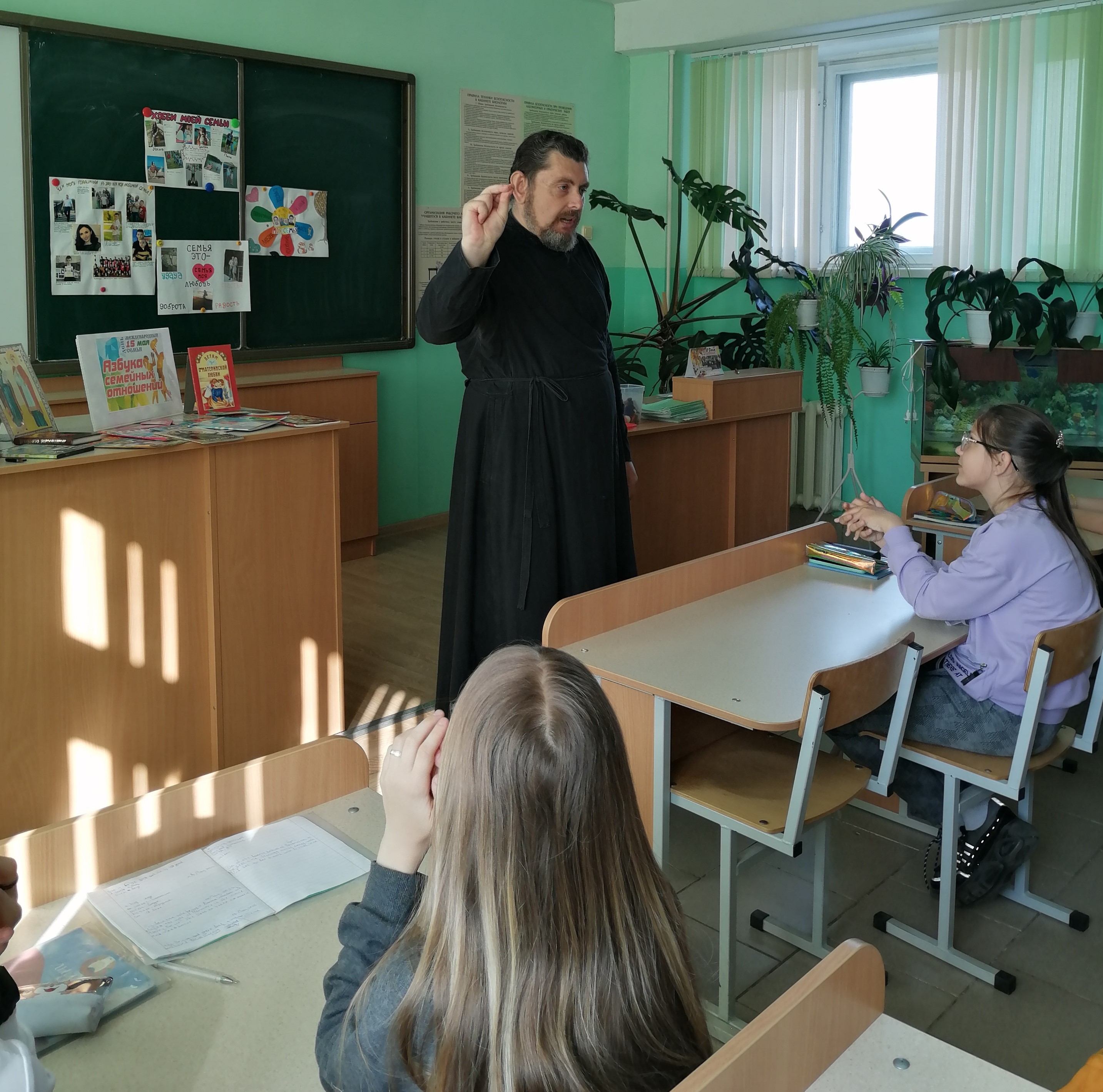 С целью духовно-нравственного просвещения и семейного воспитания подрастающего поколения сотрудники центральной районной библиотеки провели встречи со школьниками совместно со священнослужителями.