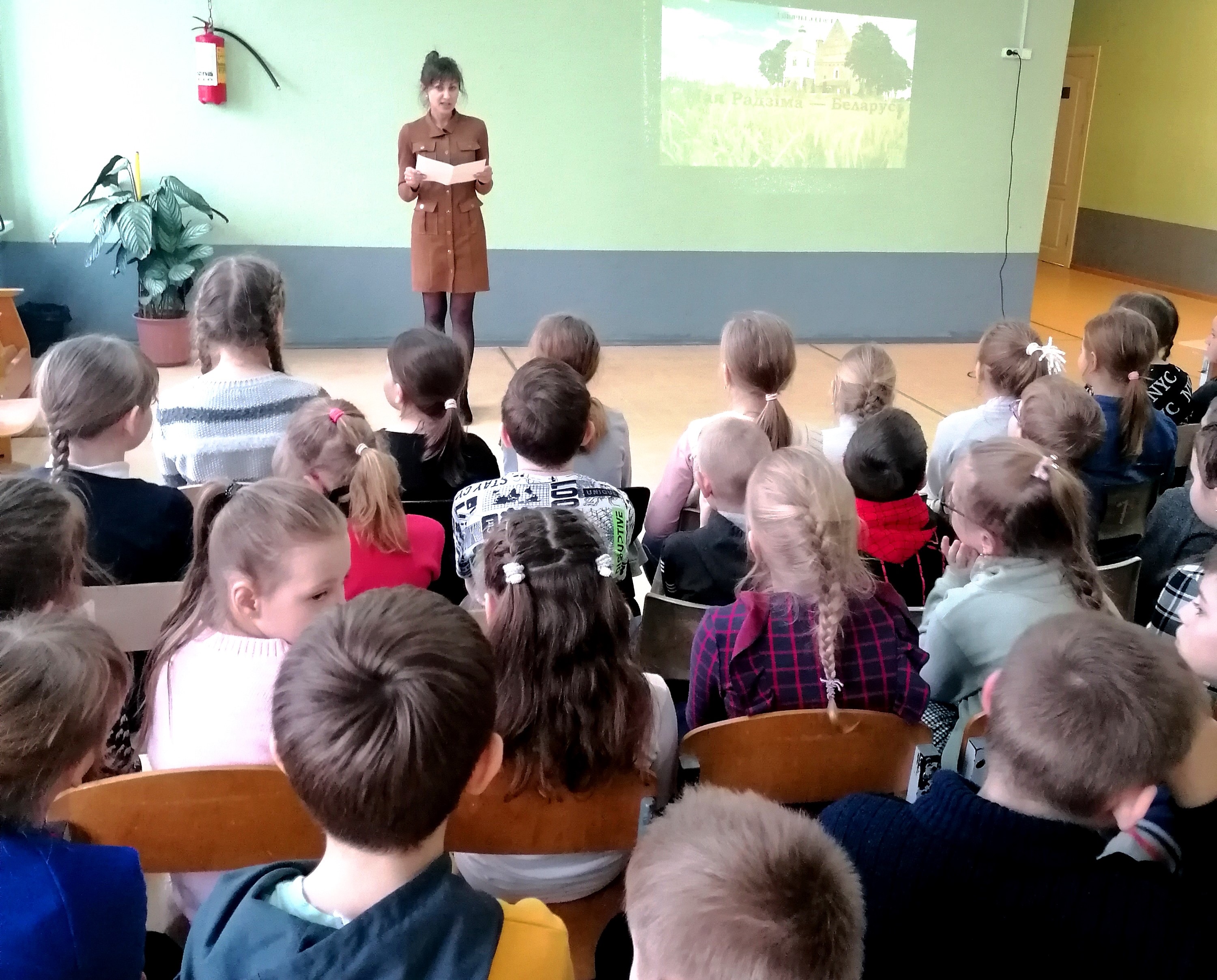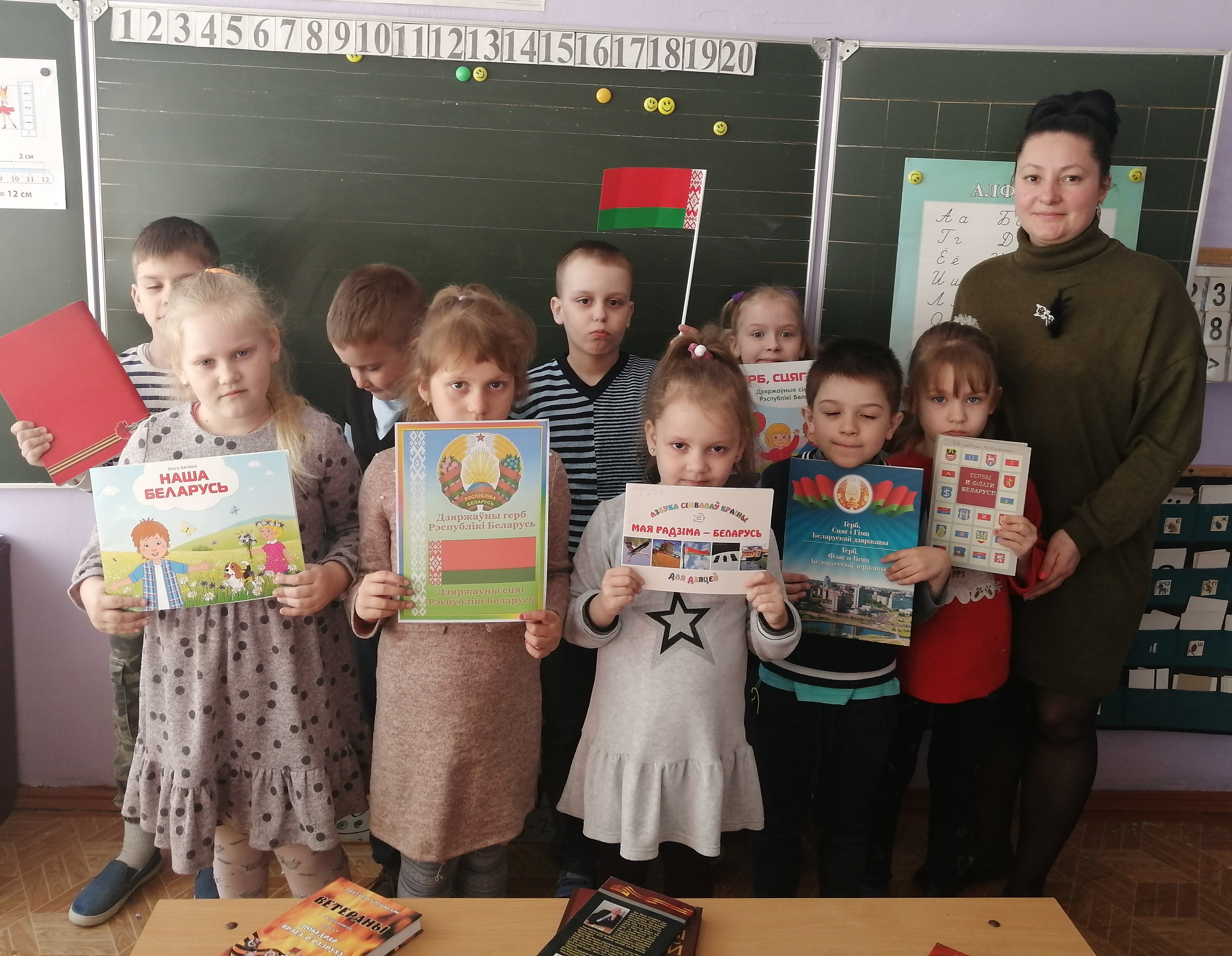 Cотрудники отдела по обслуживанию детского читателя центральной районной библиотеки провели для учащихся начальных классов средней школы №1 актуальный репортаж «Мы флагом Мы флагом Белорусским гордимся».