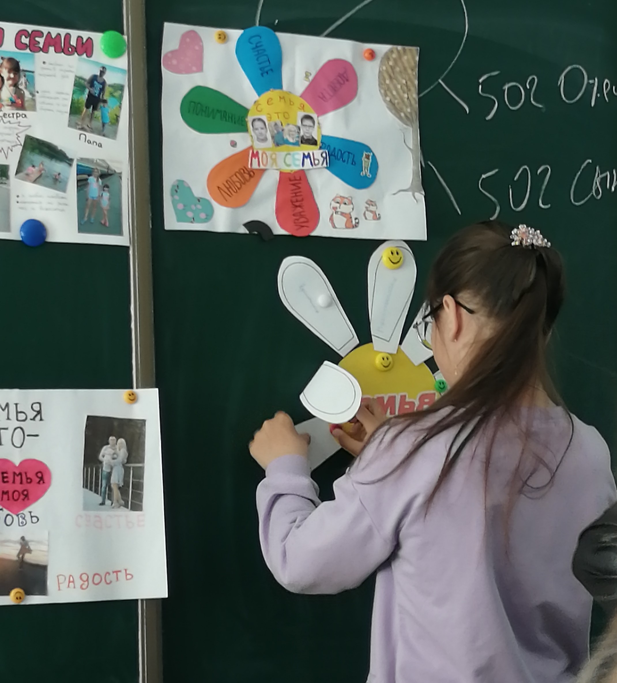 Школьники активно участвовали в конкурсах «Отгадай загадку», «Составь пословицу о семье», в викторине «Азбука духовности», на лепестках бумажной ромашки дополняли фразу «Семья – это…».