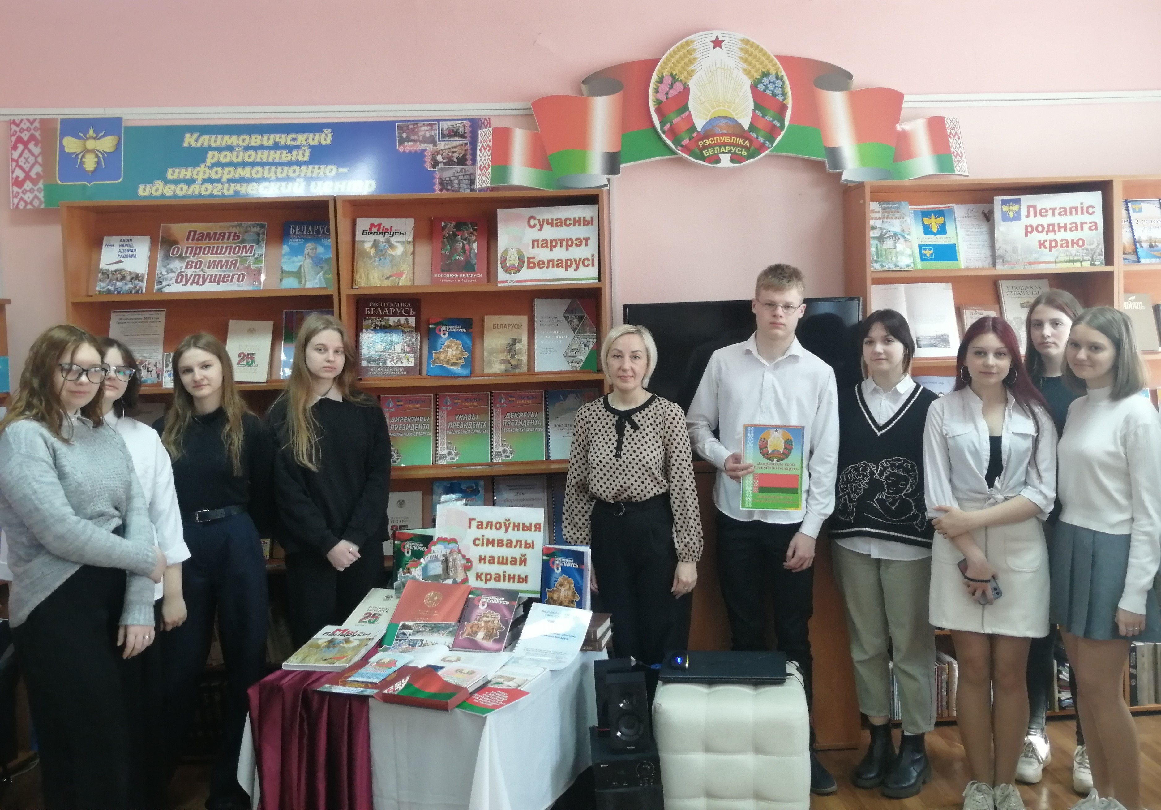 Для учащихся 10-х классов средней школы №3 в центральной районной библиотеке прошел урок гражданственности и патриотизма «Галоўныя сімвалы нашай краіны». Ребята познакомились с презентацией «Государственная символика в истории Беларуси», ответили на вопросы правовой викторины «Символы единства и славы». Библиограф рассказала о путях становления и развития государственной символики, о том, какие законодательные документы лежат в основе их утверждения, когда и где используется Государственный герб и Государственный флаг.
