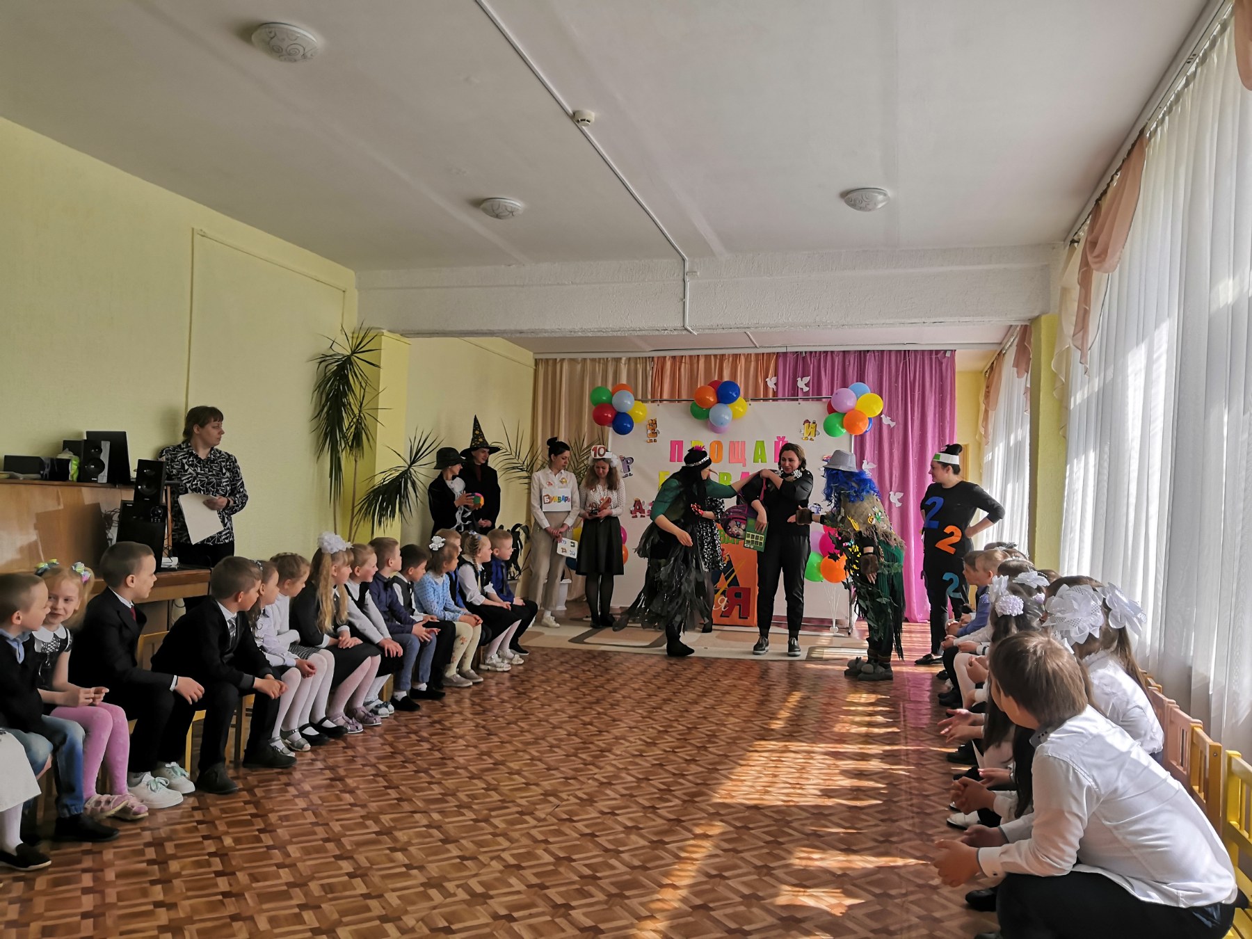 Мальчишек и девчонок встретила ведущая праздника и герои любимых детских сказок. Это были: Старуха Шапокляк, Баба Яга и её внучка, Леший, злая Колдунья и Двойка. А особыми гостями были Букварь и Десятка, для которых ребята читали стихи и пели весёлые школьные песни и частушки. Первоклассники учили сказочных героев говорить вежливые слова, вместе собирали портфель и участвовали в различных конкурсах. В честь окончания первого класса детям вручили дипломы и сладкие призы. На мероприятии царила атмосфера добра и сказочности.
