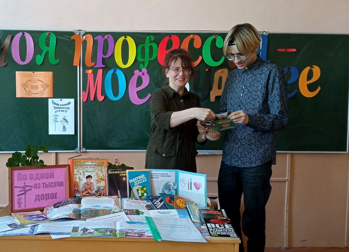 Чтобы помочь подросткам определиться в выборе профессии, библиотекари городской библиотеки №1 посетили учащихся 9 класса средней школы №4 с уроком-профориентацией «Моя профессия – мое будущее». Библиотекари рассказали о своей профессии, об учебных заведениях, готовящих специалистов для библиотек. Учащиеся приняли участие в игре «Кто есть кто?», блицтурнире «Профи» и шуточном тесте «Ты и твоя профессия».