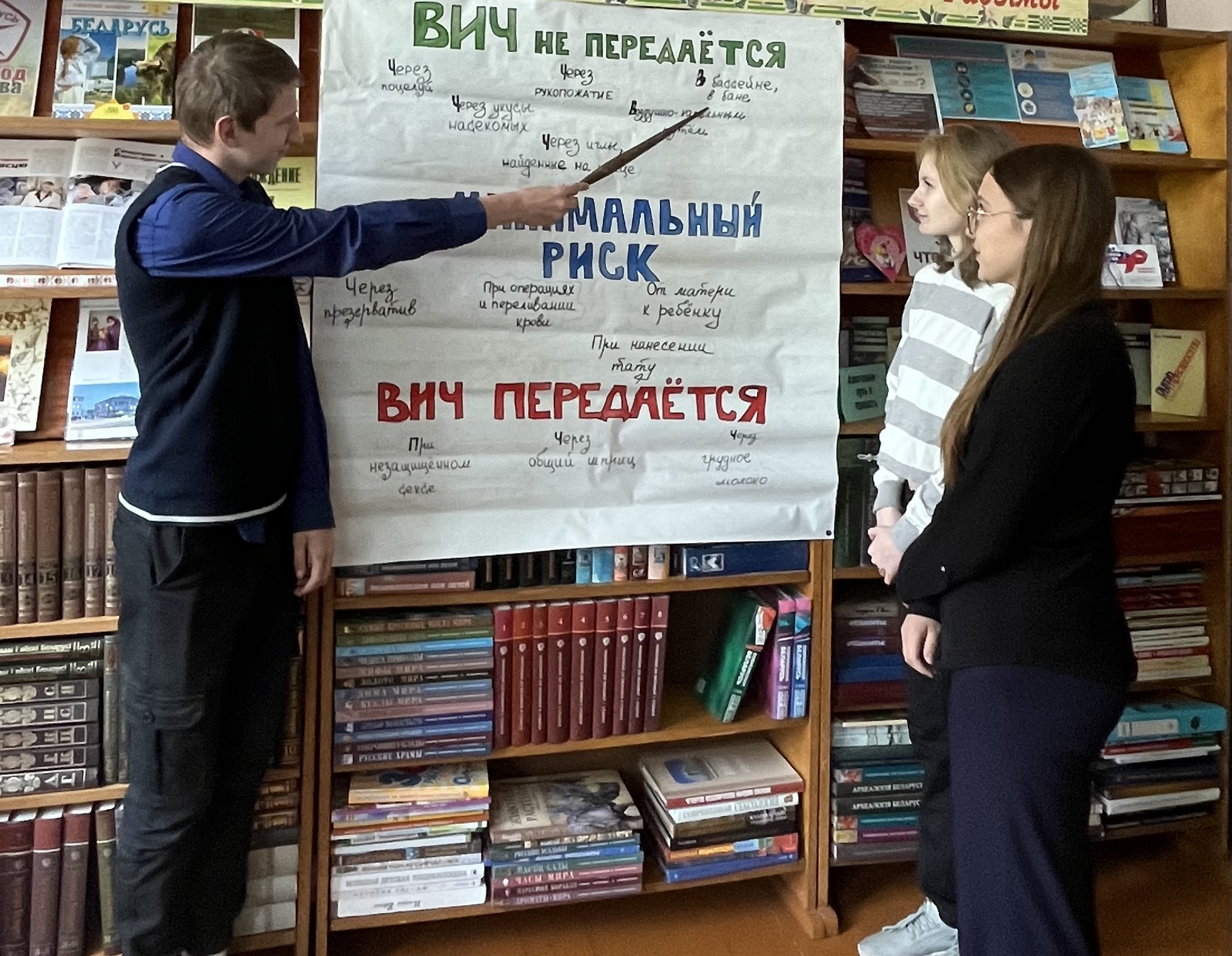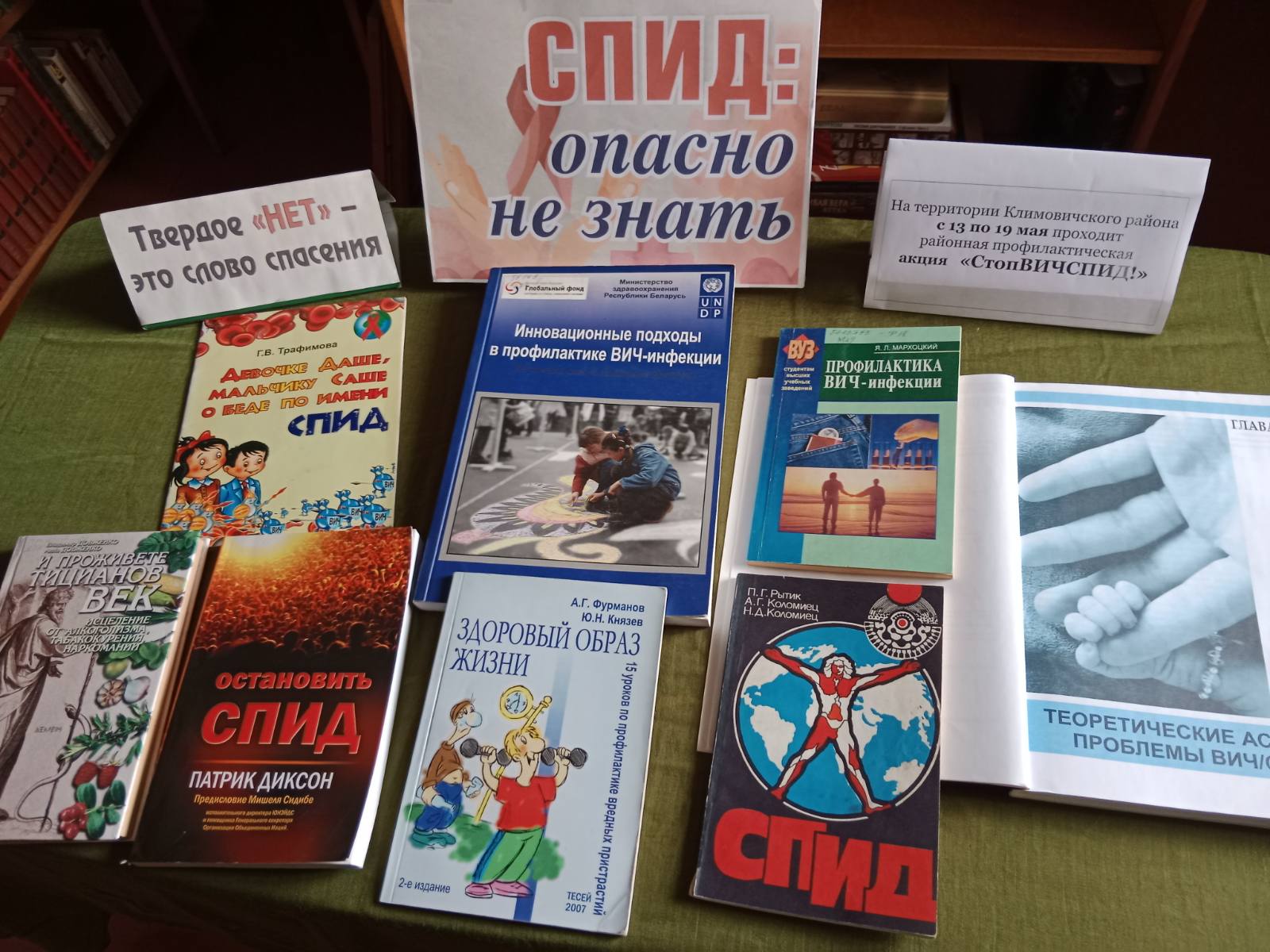 В течении недели в библиотеках Климовичского района проходит цикл тематических мероприятий - диспуты, беседы, информационные часы, уроки, оформлены тематические полки, книжные выставки с информационными материалами. Библиотекари рассказывают своим посетителям об истории заболевания, путях передачи вируса, лечении и профилактике ВИЧ-инфекции. Всем участникам раздаются буклеты, листовки, флаеры.