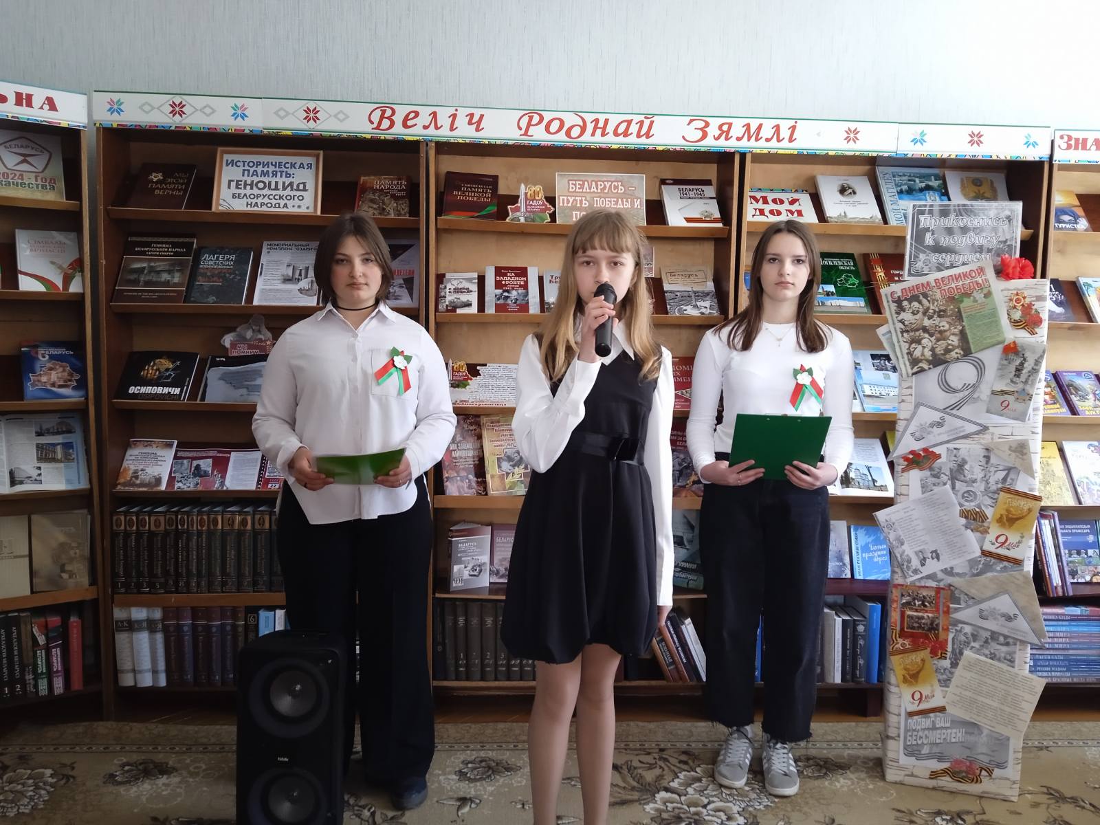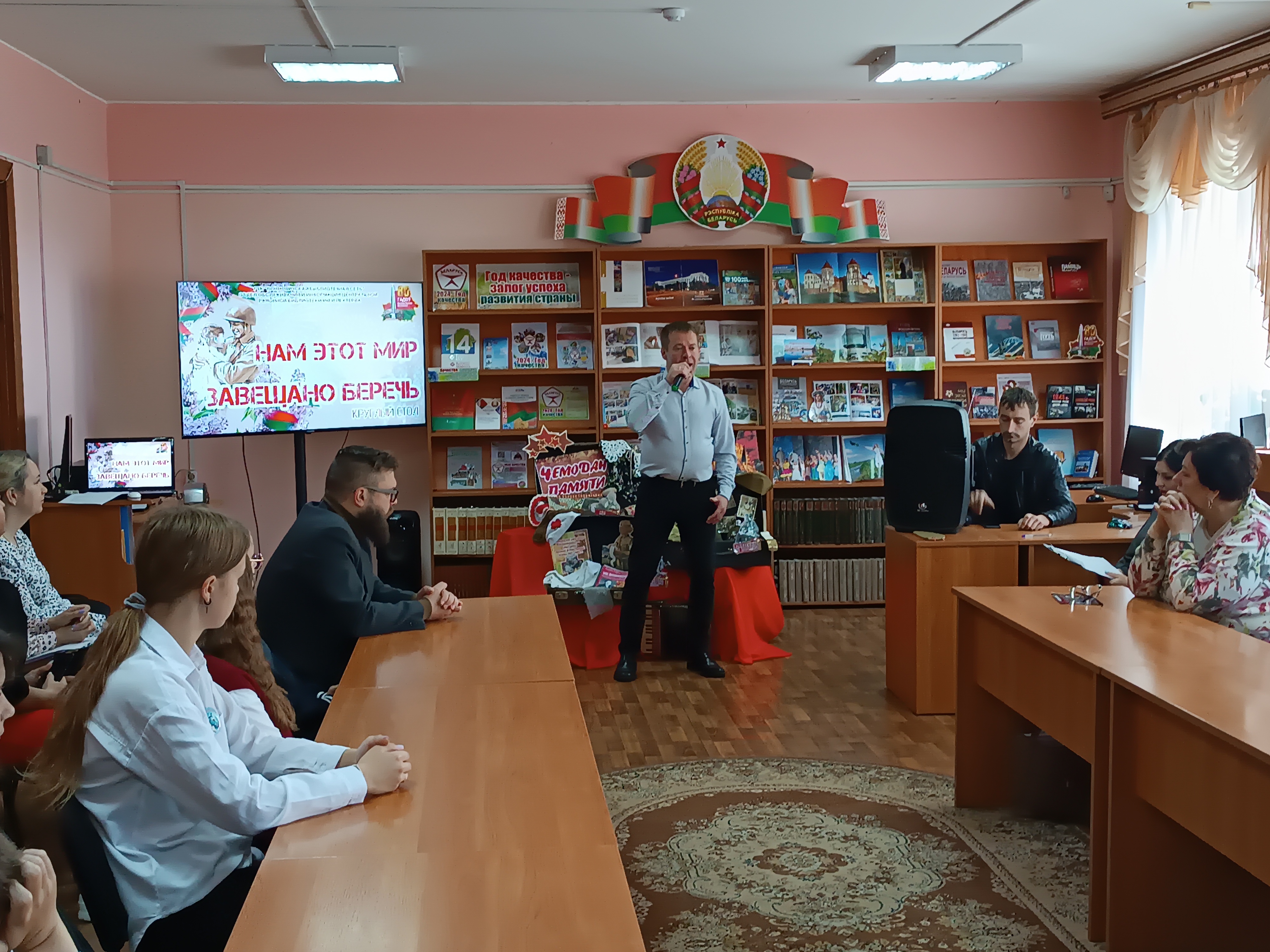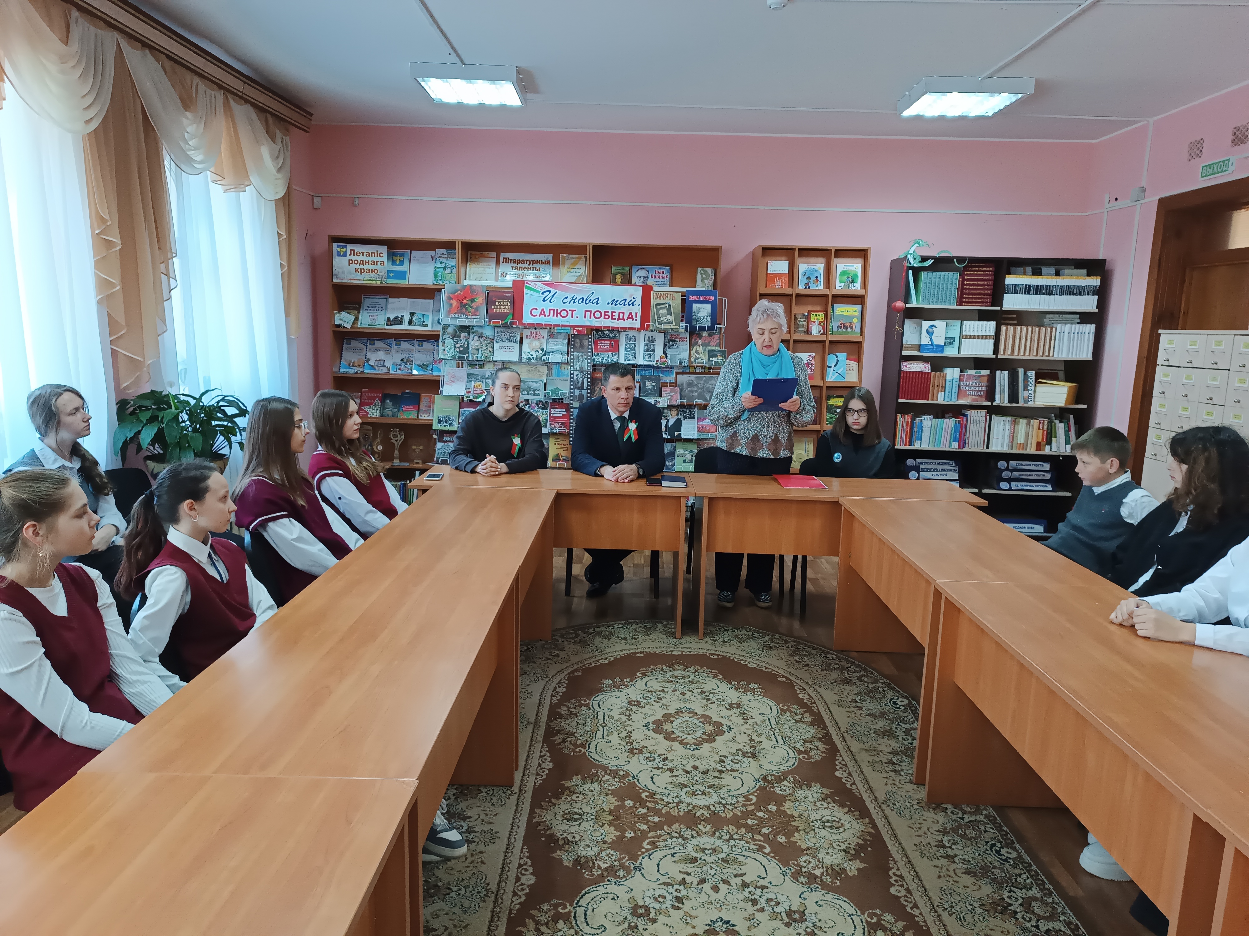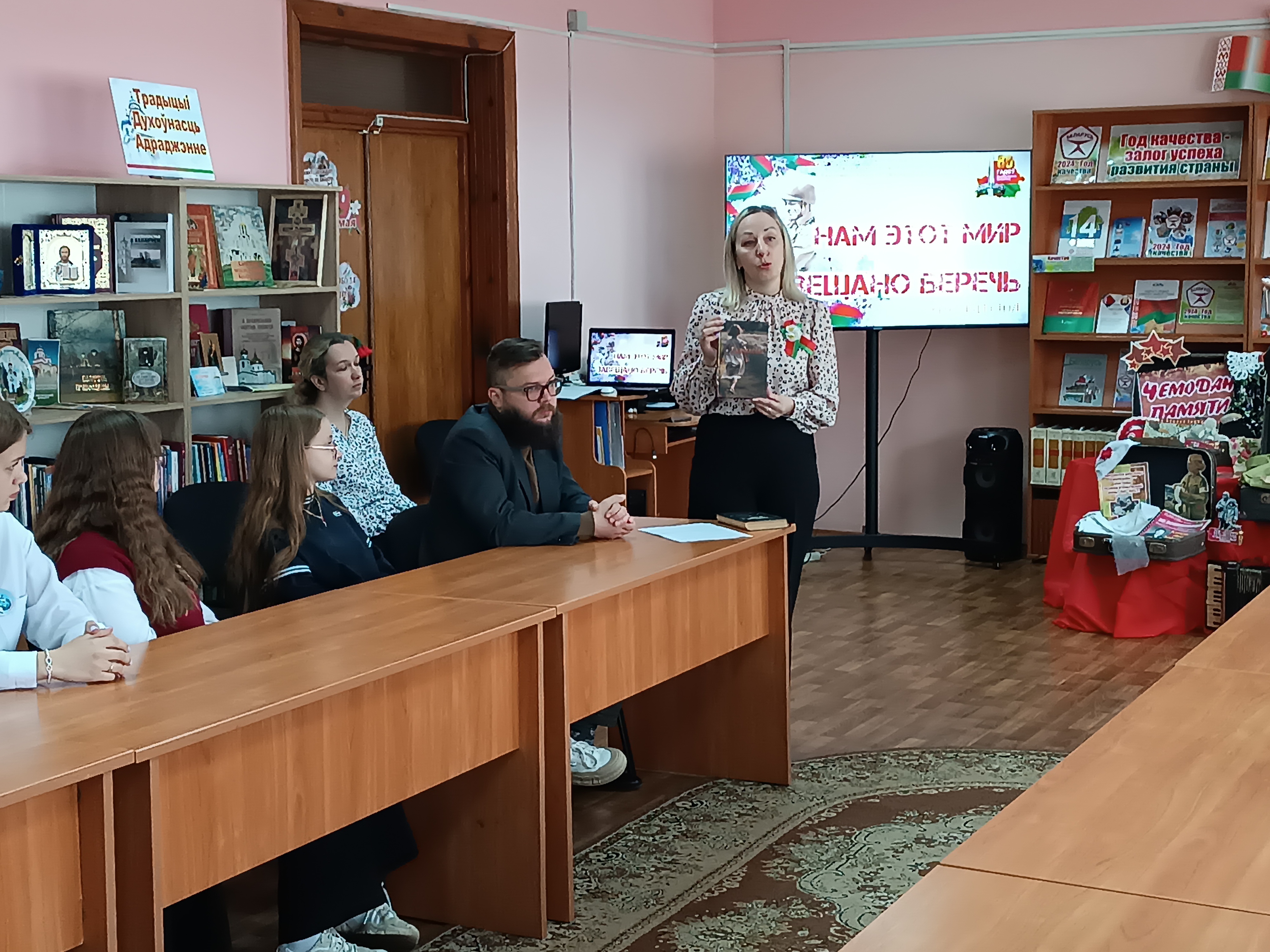 В центральной районной библиотеке состоялся круглый стол «Нам этот мир завещано беречь». С учащимися средней школы №3 встретились начальник отдела идеологической работы и по делам молодежи райисполкома Андрей Зенькович, первый секретарь БРСМ Алина Рябцева и председатель ветеранской организации Валентина Цыганкова. Они говорили о значимости Дня Победы, о памяти событий времен Великой Отечественной войны, которую несем через годы.