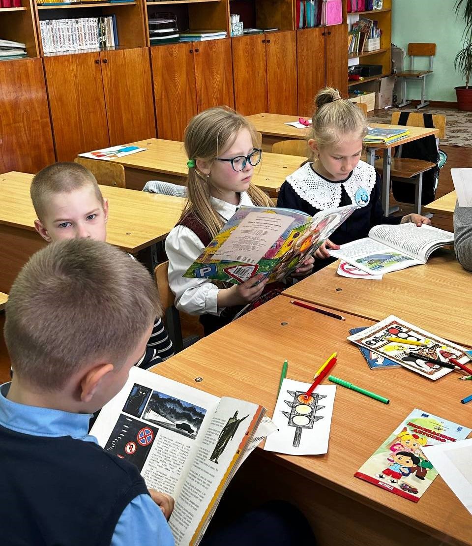 Библиотекарь познакомила юных читателей с познавательными книгами «Загадки Стёпы Светофорова», «Я иду через дорогу», «Лёша в стране дорожных знаков».