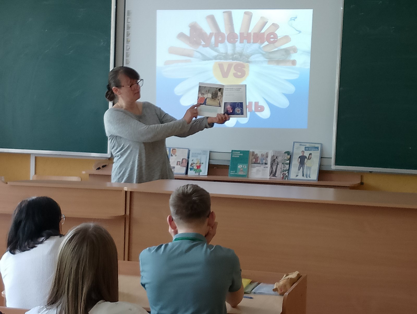 Библиотекарь городской библиотеки №2 в районной гимназии для учащихся 7-х классов провела слайд-презентацию «Оставайся на линии жизни». Участники мероприятия ознакомились со статистикой курящих людей, с историей распространения табака, поговорили о том, какой вред наносят себе курильщики. Затем привели доводы, почему человек должен отказаться от курения.