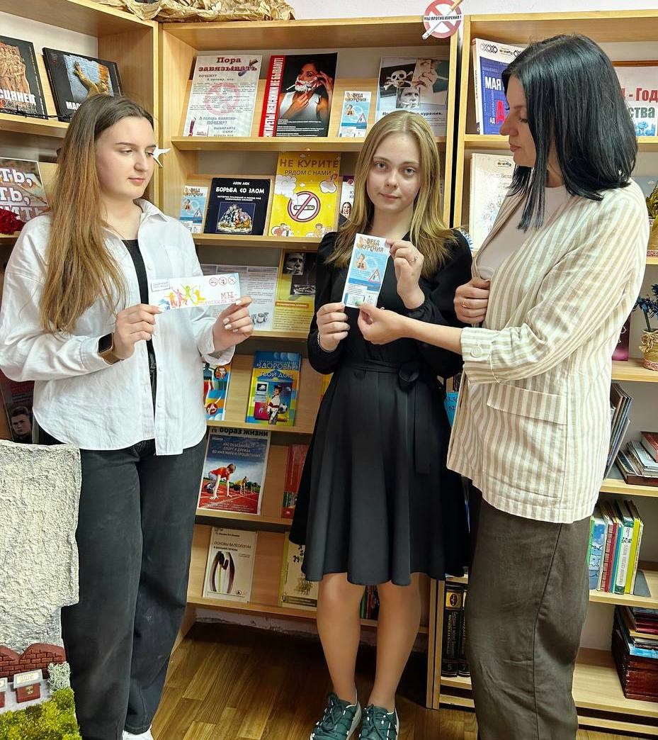 Библиотекари отдела обслуживания и информации для учащихся старших классов средней школы №4 провели актуальный диалог «Молодое поколение без вредных привычек». Вместе с библиотекарем ребята затронули острые проблемы борьбы с табачной зависимостью, обсудили, по каким характеристикам можно выявить курящего человека. Посмотрев презентацию о вреде курения «Курение – коварная ловушка», ребята сделали для себя определённые выводы и закрепили полученные знания ответив на вопросы викторины «Я никогда не буду курить». Каждый учащийся получил буклет о вреде курения и пользе здорового образа жизни.
