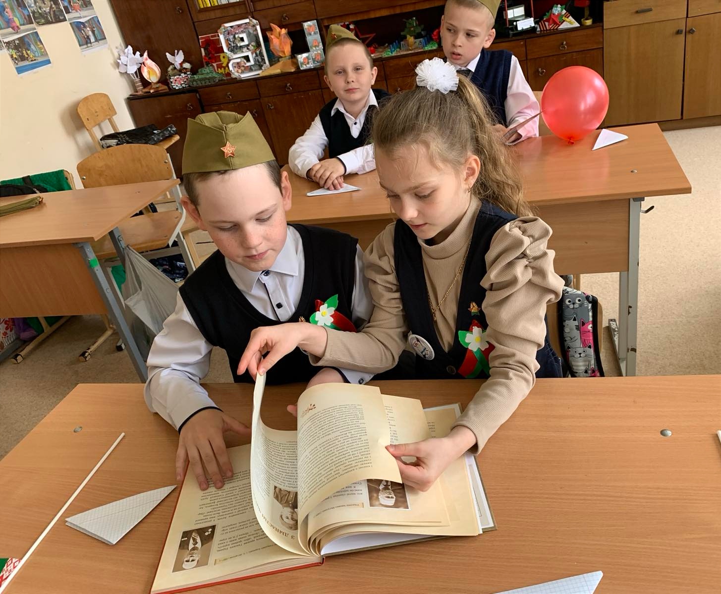 Сотрудники городской библиотеки №1 в преддверии Дня Победы для учащихся 2 «А» класса средней школы №4 провели военно-патриотический час «И помнит мир спасённый».