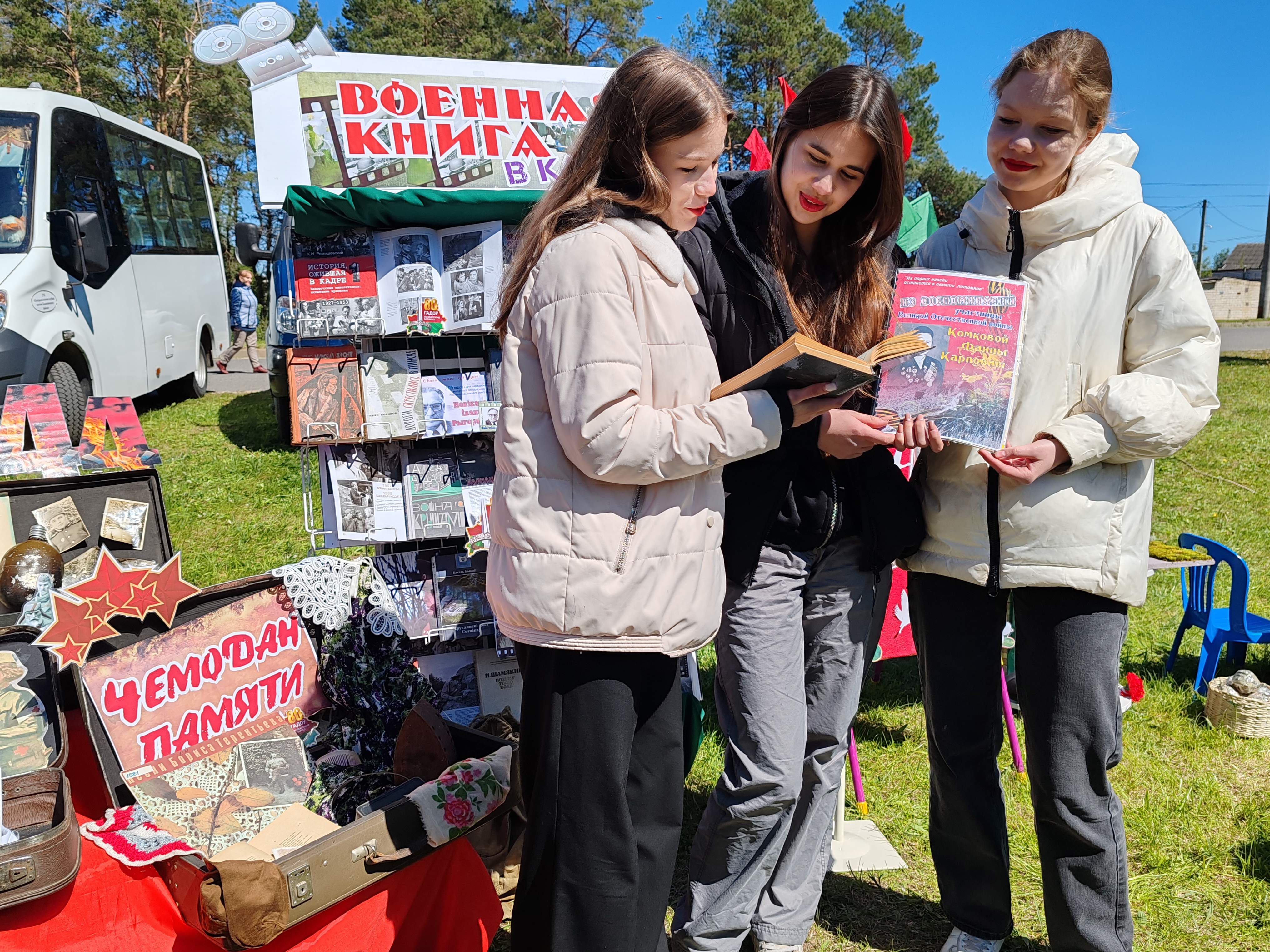 9 мая на районном празднике, посвященном Дню Победы, центральная районная библиотека организовала интерактивную площадку «Фронтовая библиотека». Здесь можно было познакомиться с литературой, отражающей судьбоносный путь нашего народа к Великой Победе, книги и фотоматериалы о героях-земляках, отдавших свою жизнь за будущее страны. Для создания целостного образа выставка была дополнена информационно-иллюстративными материалами, предметами и артефактами.
