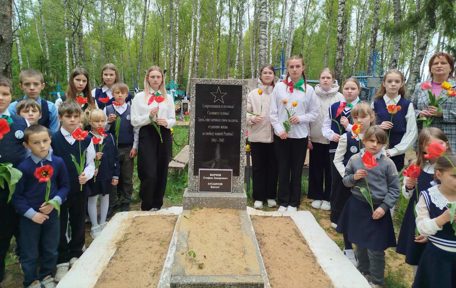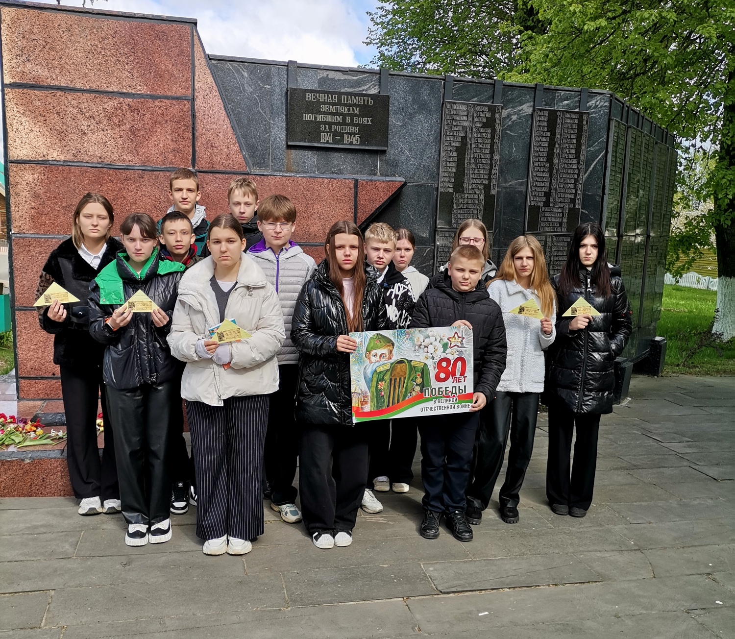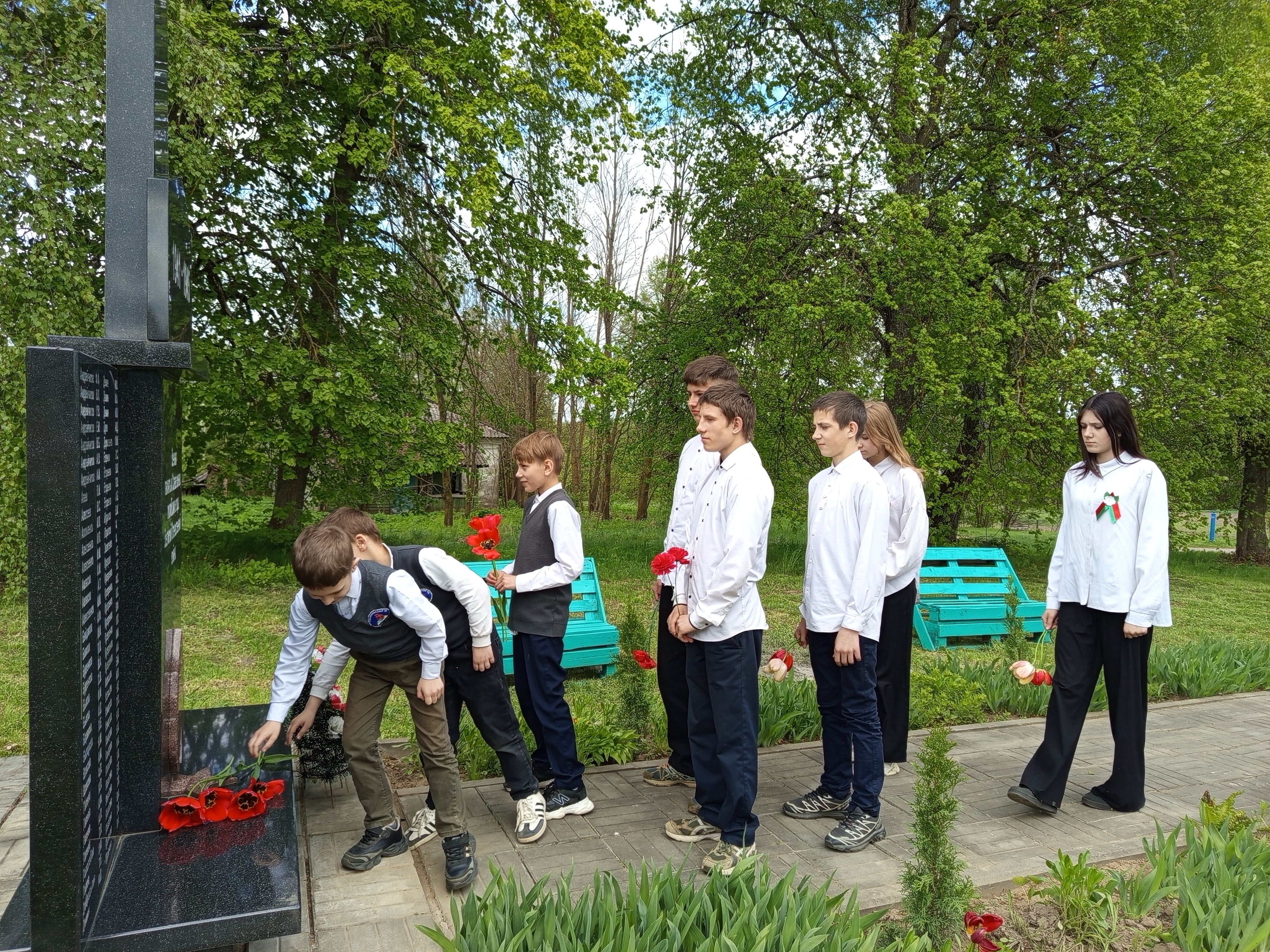 В завершении мероприятия у памятника воинам-землякам учащиеся почтили память погибших минутой молчания.