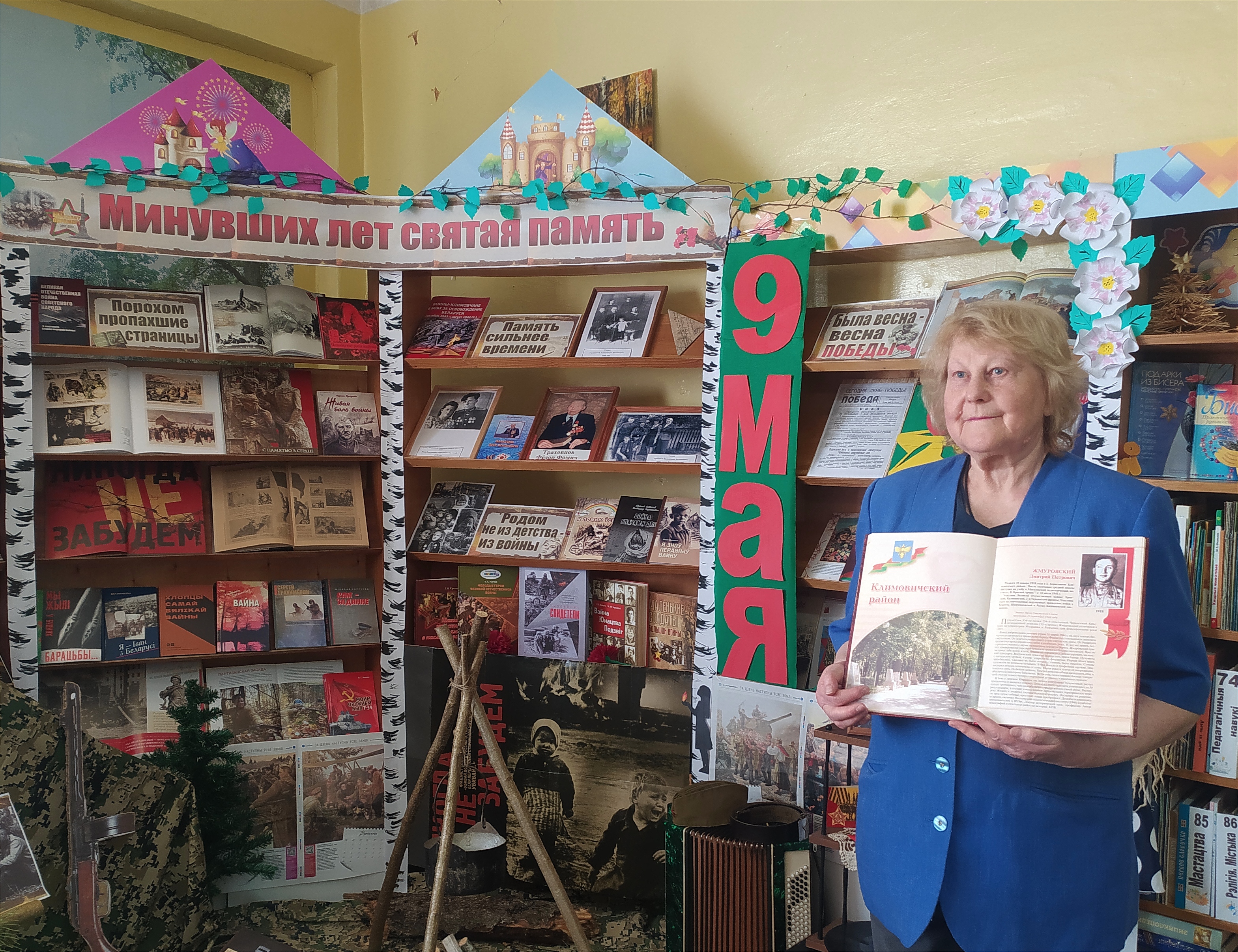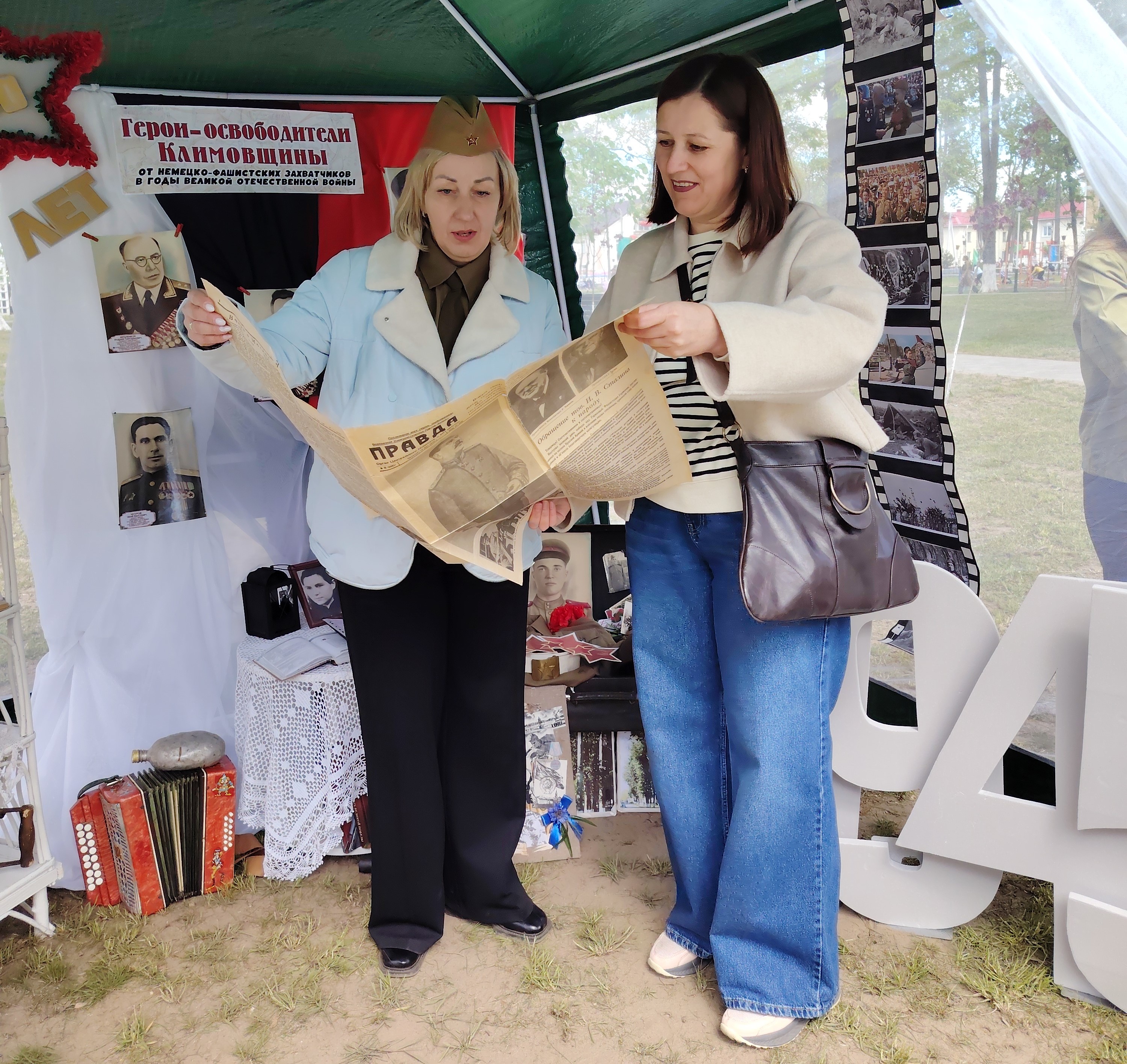 Вниманию жителей и гостей города была представлена тематическая фотоэкспозиция «Герои-освободители Климовщины от немецко-фашистских захватчиков». Дополняли экспозицию атрибуты военного времени, уникальные фотографии из личных архивов сотрудников библиотеки, чьи родственники принимали участие в Великой Отечественной войне.