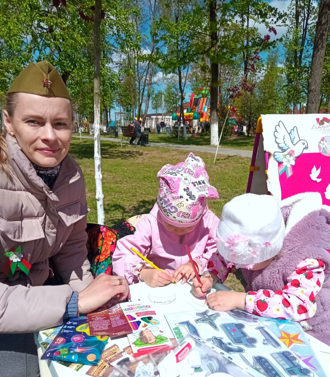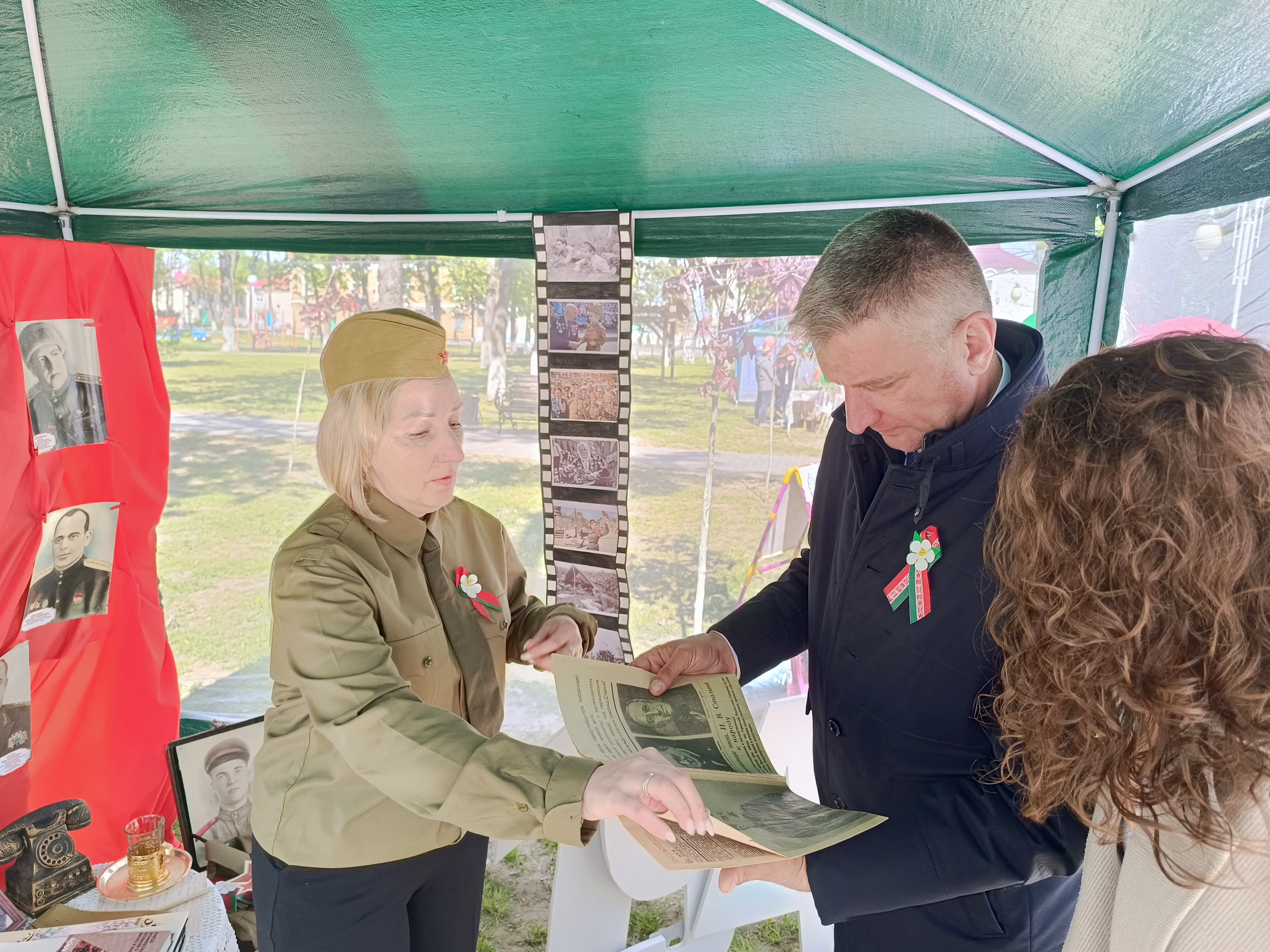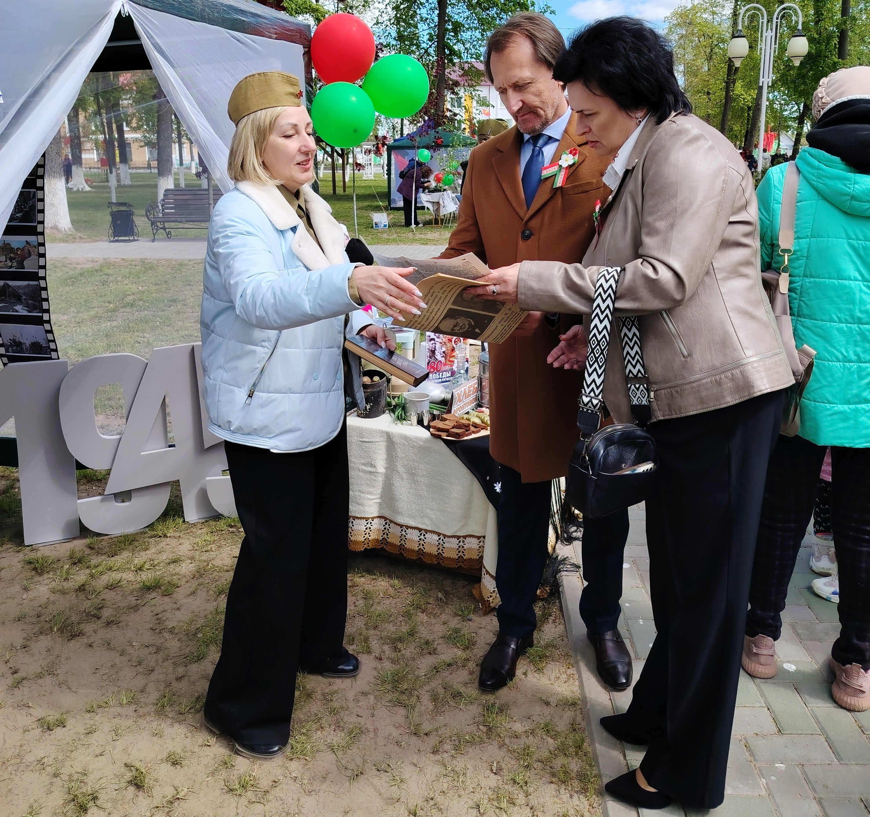 9 мая в городском парке во время районного мероприятия, посвящённого 80-летию Победы советского народа в Великой Отечественной войне, сотрудниками центральной районной библиотеки была организована итерактивная площадка «Фронтовая библиотека. 80 мирных лет».