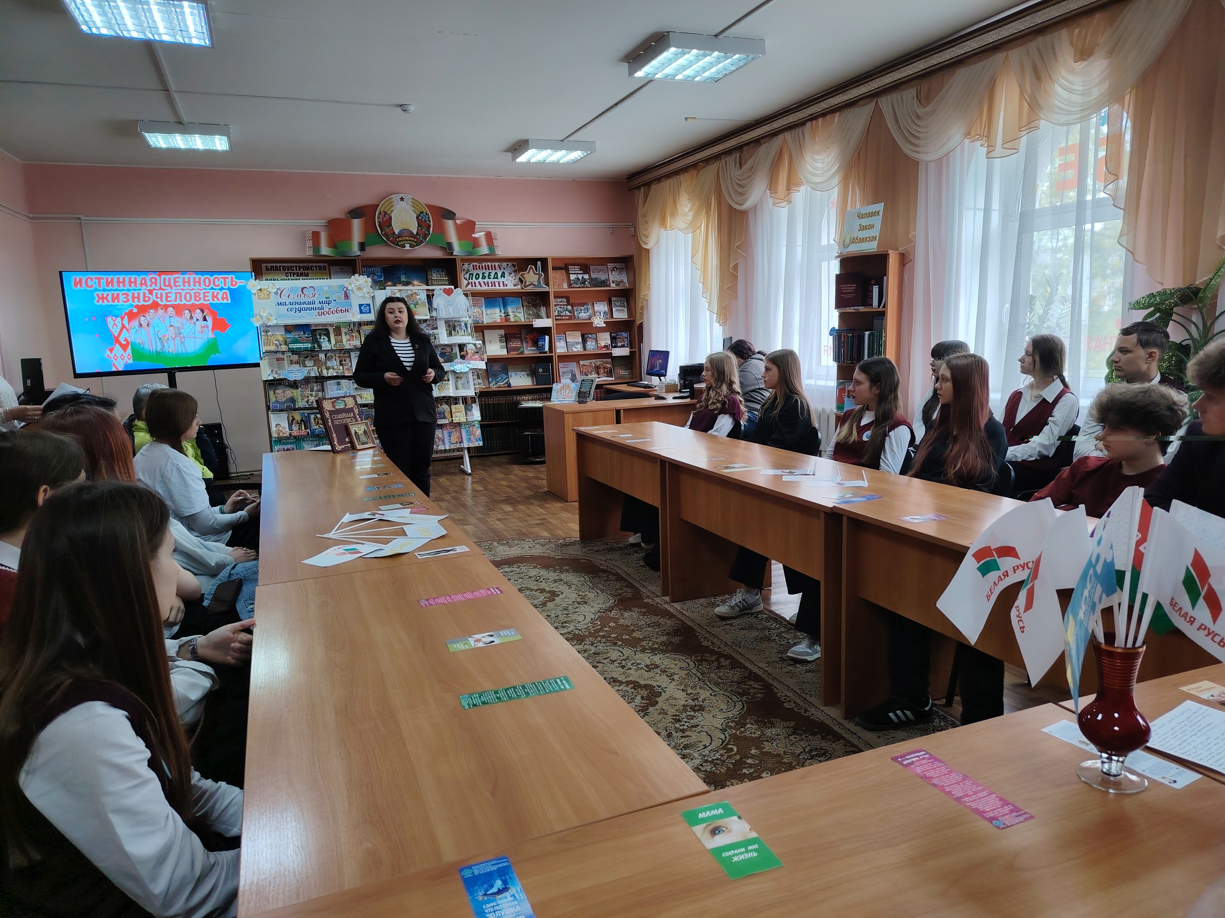Так, 15 мая, для учащихся 9 класса средней школы №3 центральная районная библиотека стала площадкой для проведения беседы-размышления «Истинная ценность — жизнь человека». В мероприятии принял участие настоятель Милославичской и Звенчатской церквей отец Николай Вечорко, который говорил о значении традиционных семейный ценностях для современного общества, о ролях мужа и жены в семье и о том, что значит быть главой семьи в христианском понимании.
