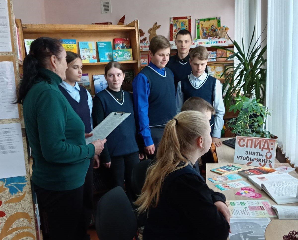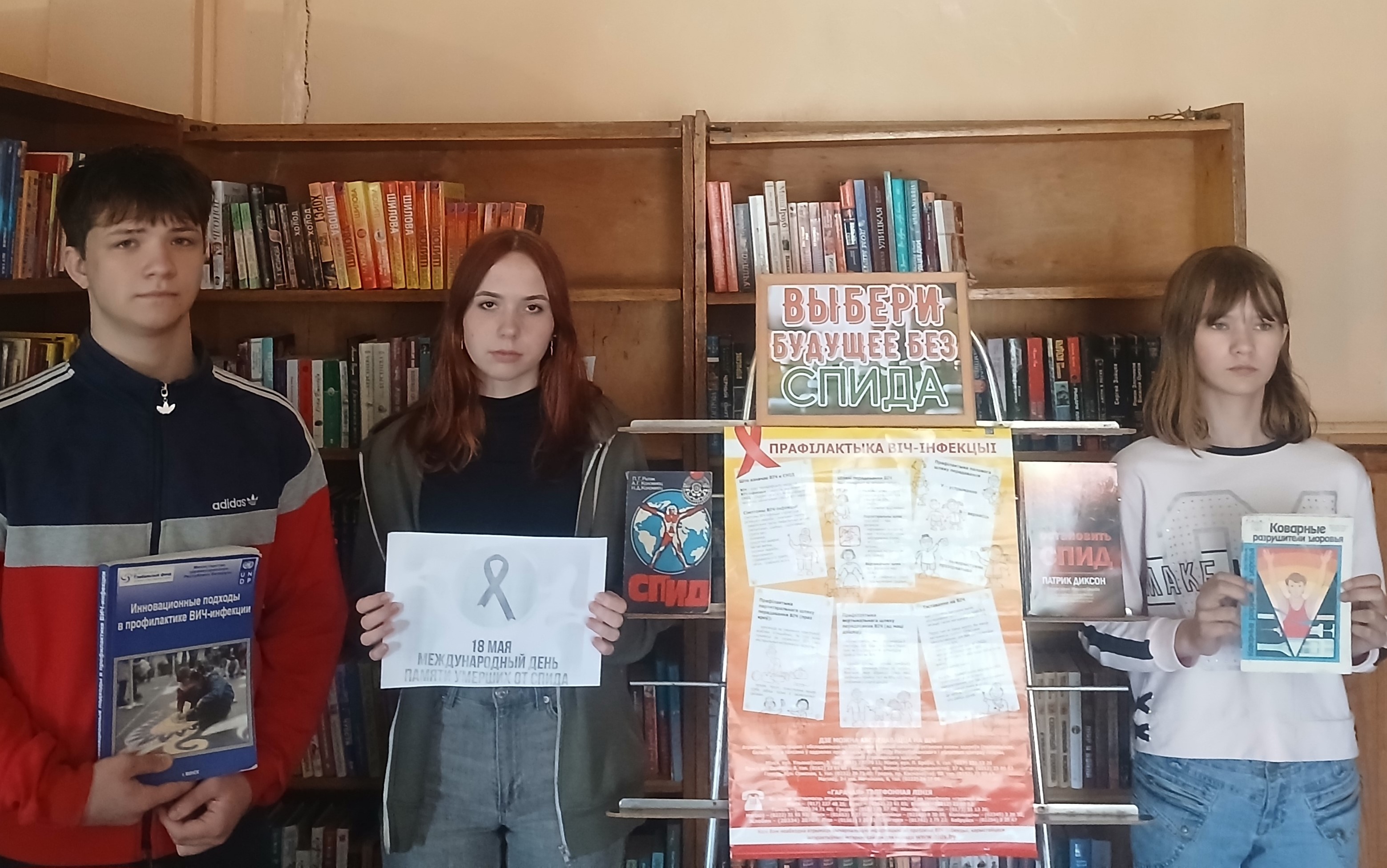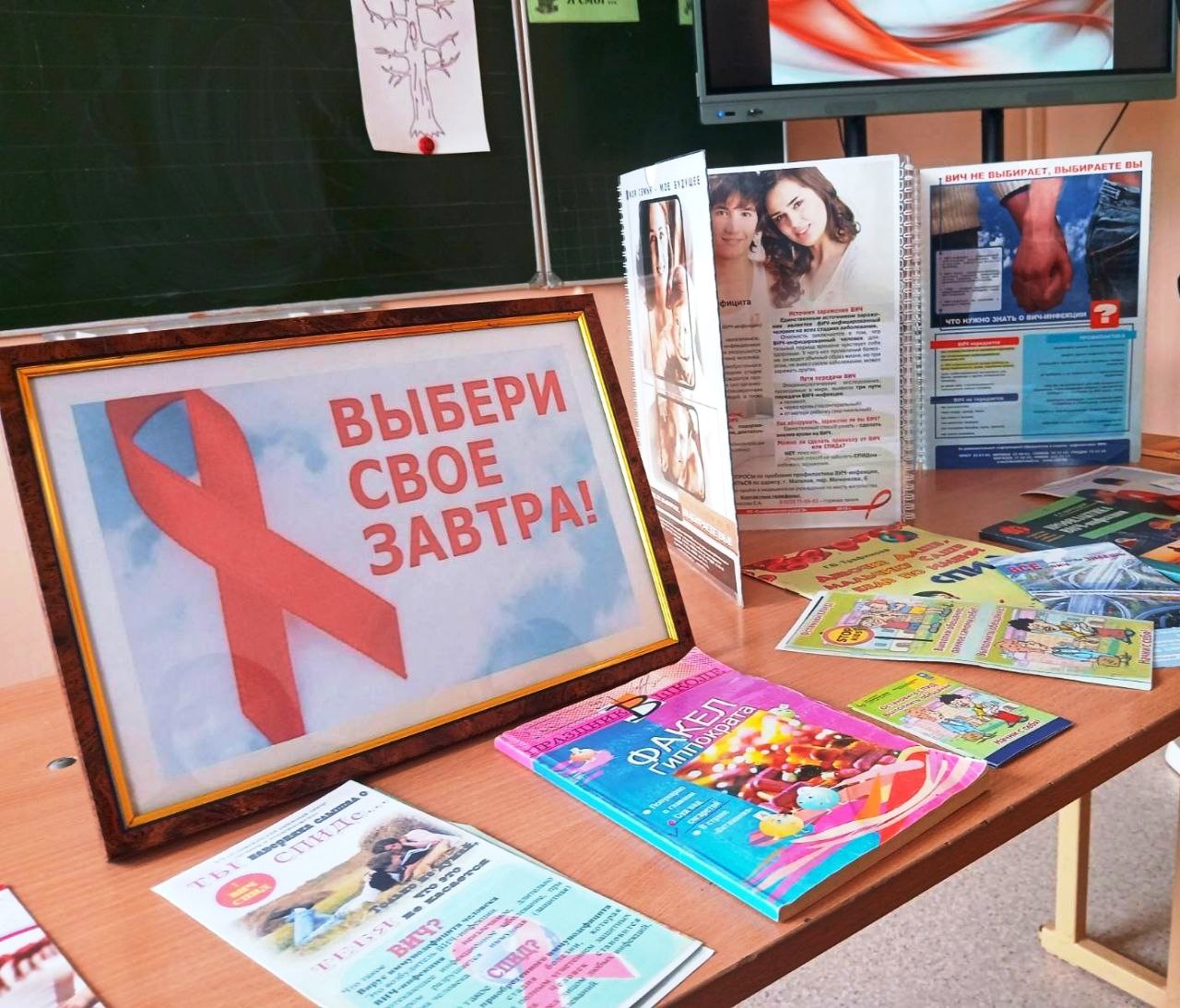Сотрудники детско-юношеского сектора центральной библиотеки для учащихся десятых классов средней школы № 4 провели урок здоровья «Выбери своё завтра». Библиотекарь рассказала учащимся о причинах распространения СПИДа, путях передачи и стадиях ВИЧ-инфекции, об известных людях, умерших от этой болезни. Закрепить полученные знания подростки смогли, отвечая на вопросы викторин «Степень риска» и «Цепная реакция». Каждому участнику мероприятия вручили красную ленточку, которую они крепили на стенд в знак памяти, сострадания, поддержки и надежды на будущее без СПИДа. В завершении ребята посмотрели тематический видеоролик «ВИЧ: знать, чтобы жить».