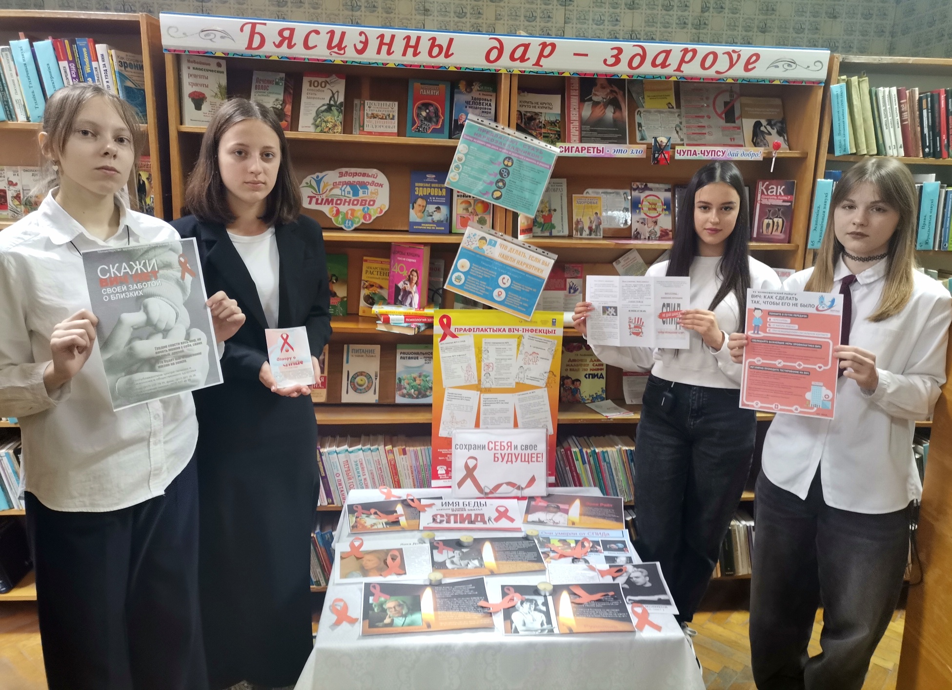 В рамках профилактического проекта «Тимоново – здоровый агрогородок» в библиотеке агрогородка Тимоново для учащихся старших классов был проведен открытый диалог «СПИД не выбирает – выбираешь ты» с участием инструктора-валеолога РайЦГЭ Красновой Виктории Александровны. Она рассказала ребятам историю появления синдрома приобретенного иммунного дефицита (СПИДа), чем он отличается от ВИЧ-инфекции, о симптомах ВИЧ, а так же профилактике данных заболеваний. Пути заражения и признаки заболевания ВИЧ – эти и другие темы были затронуты в ходе беседы. Были озвучены и статистические данные заболеваемости СПИДом по нашему району и в целом по стране.