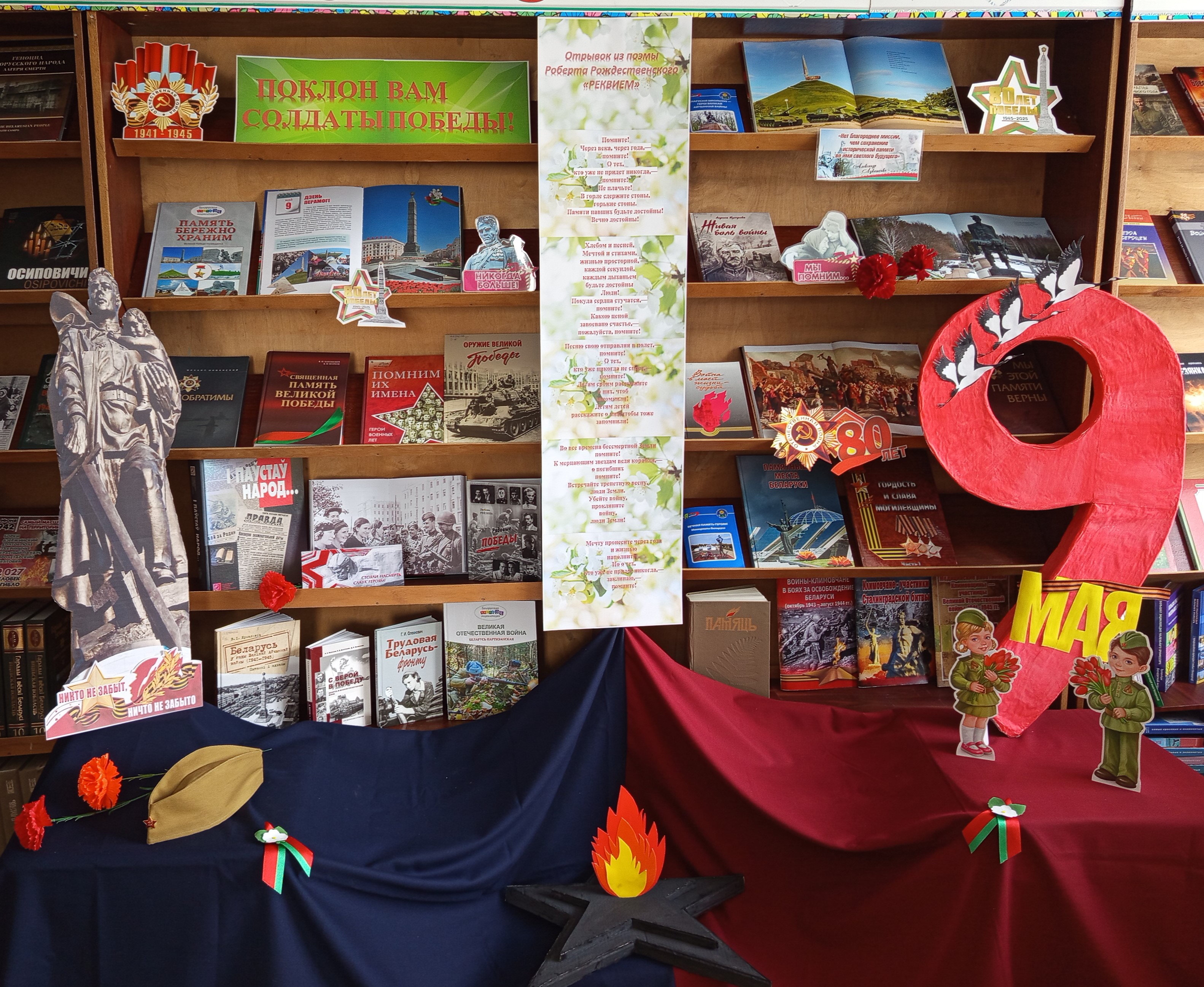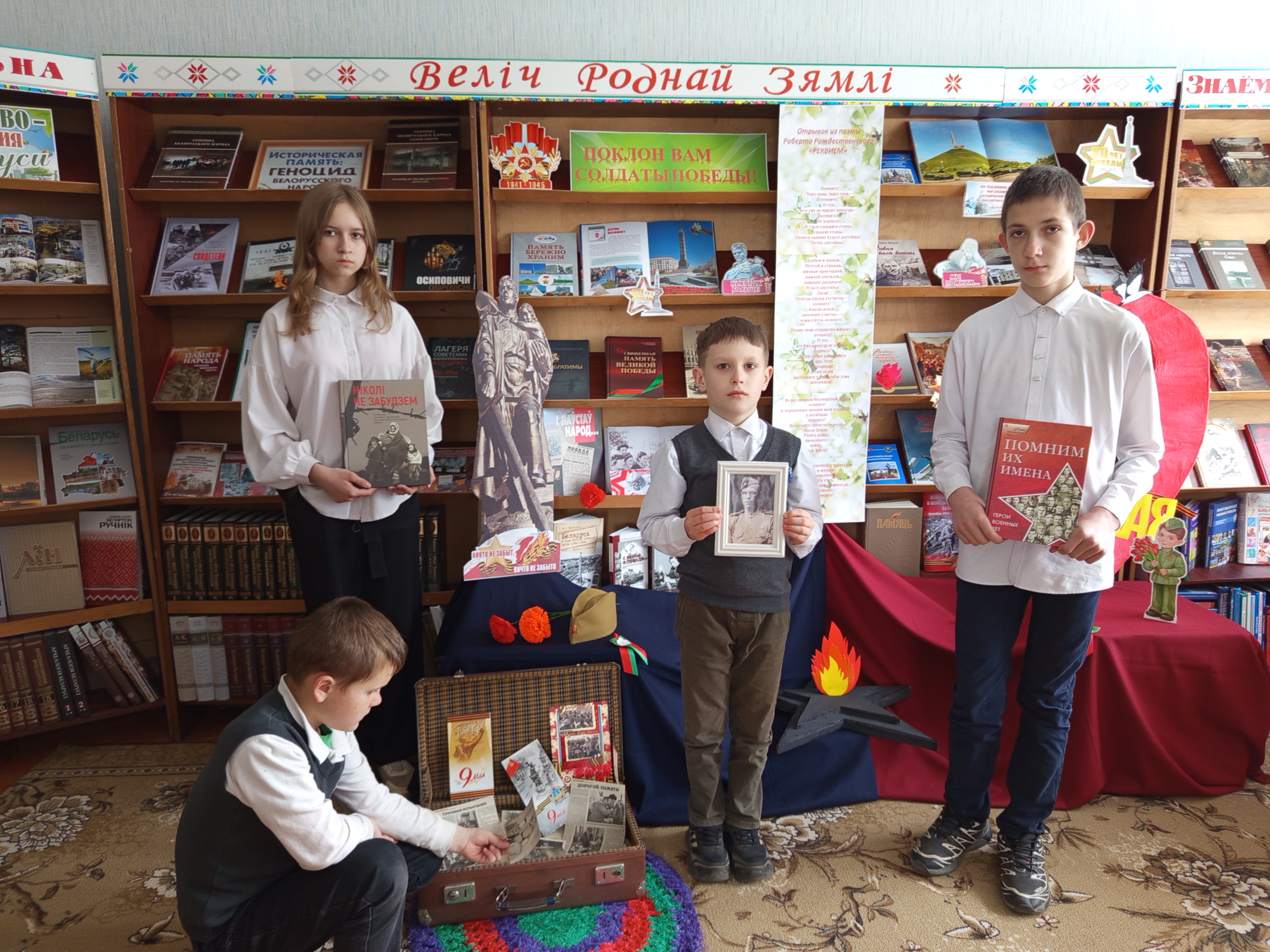 В целях увековечивания памяти о событиях Великой Отечественной войны и ее героях в каждой библиотеке экспонируются книжно-иллюстрированные выставки-инсталляции. На выставках представлены не только книги и иллюстрации, но и фотографии, документы, воспоминания ветеранов, а также мультимедийные материалы.