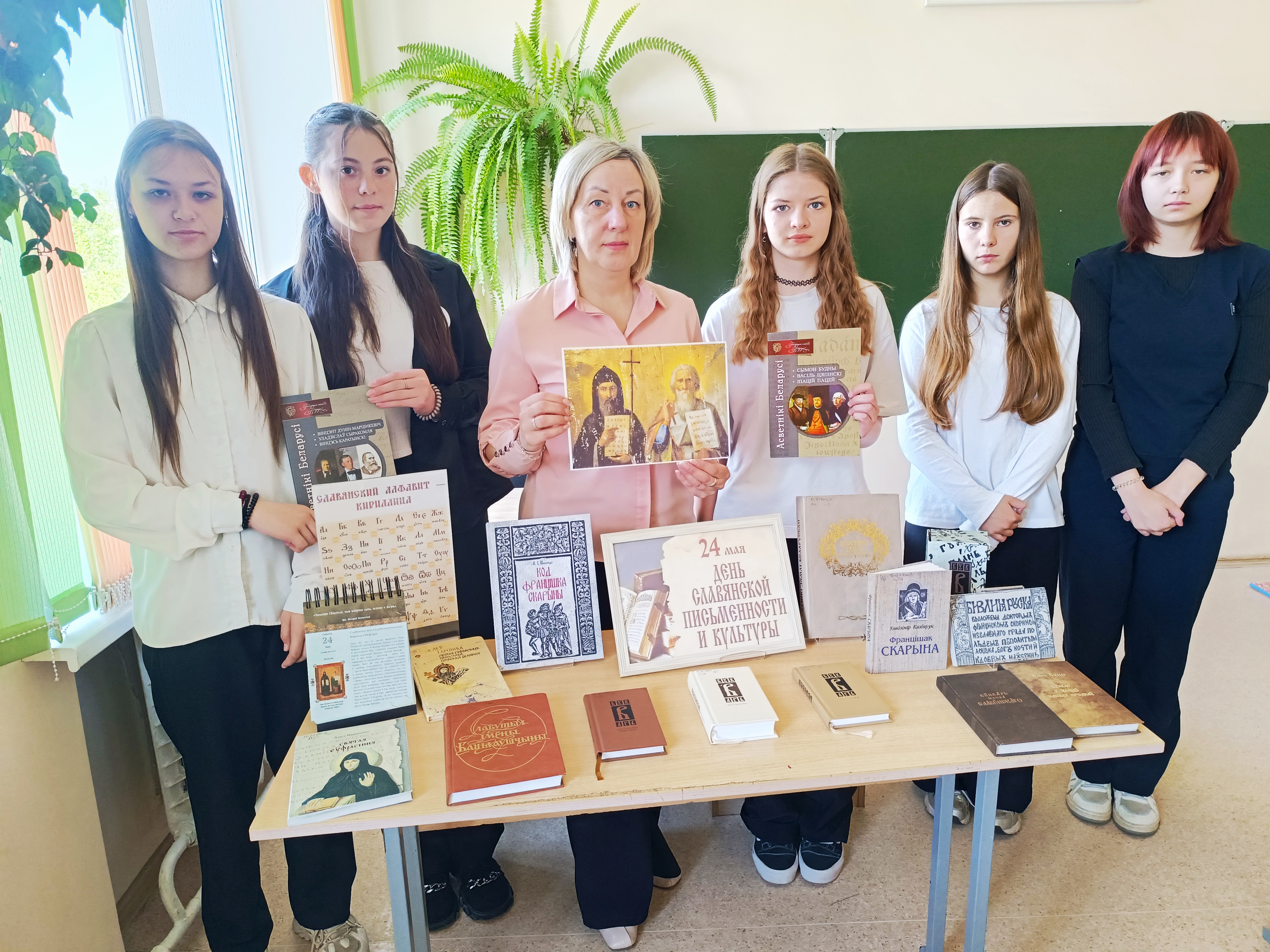 Для них был проведен обзор книжной выставки «Свет дневной, есть слово книжное», на которой представлена литература по теме славянской письменности из фонда библиотеки. Учащиеся получили новые знания об истории славянской письменности и культуры.