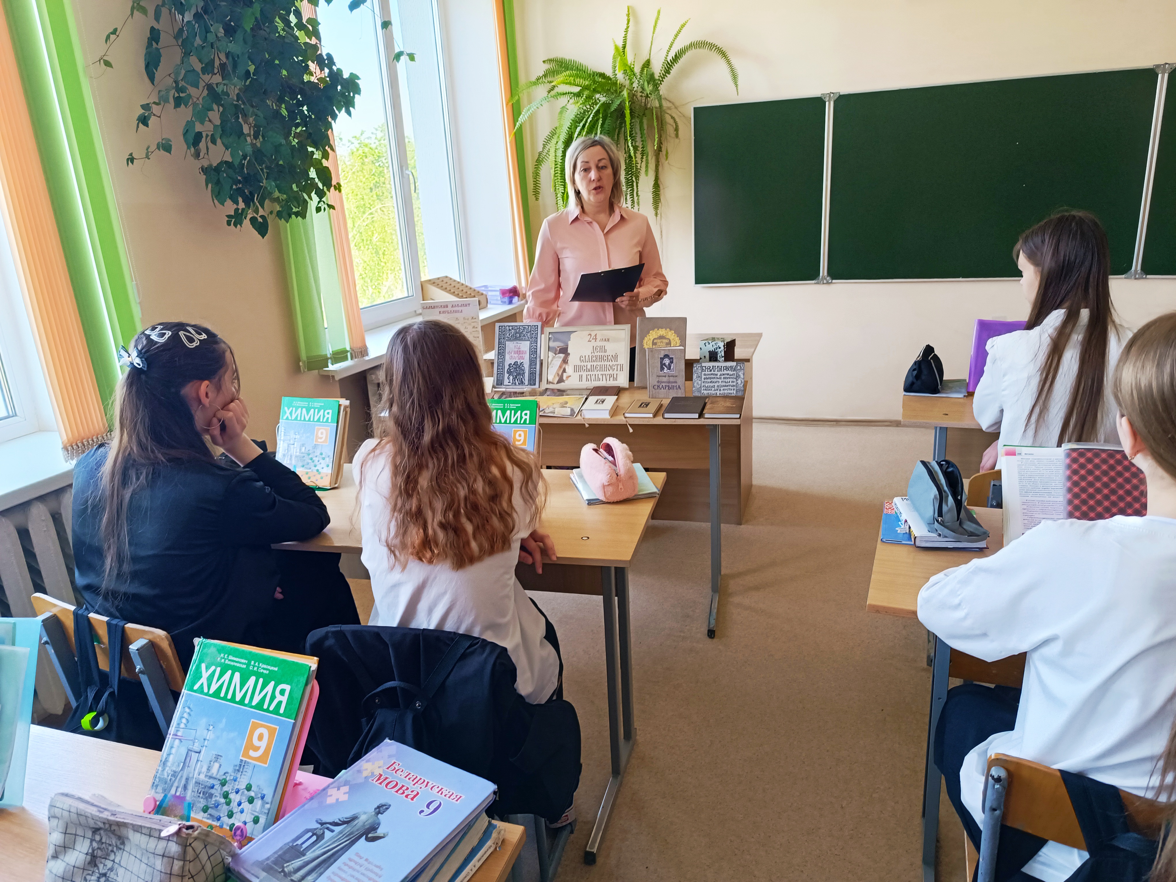 К этой дате для учащихся 9 класса средней школы № 4 сотрудники центральной районной библиотеки провели историко-познавательную лекцию «Посланье предков-слово книжное». Дети перенеслись в далёкое прошлое, прослушали рассказ о том, когда и как возникла письменность на Руси, познакомились с создателями первого славянского алфавита святыми Кириллом и Мефодием и их просветительской деятельностью, с историей создания первого учебника — «Азбука». Ребята приняли участие в тематической викторине «Азбука славянской письменности».