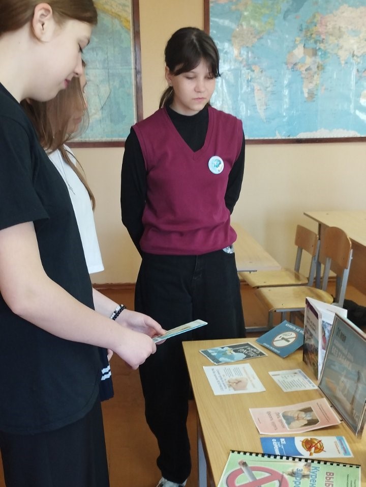 В завершении мероприятия библиотекарь познакомила школьников с литературой, представленной на выставке «Сохрани себя и свое будущие!».