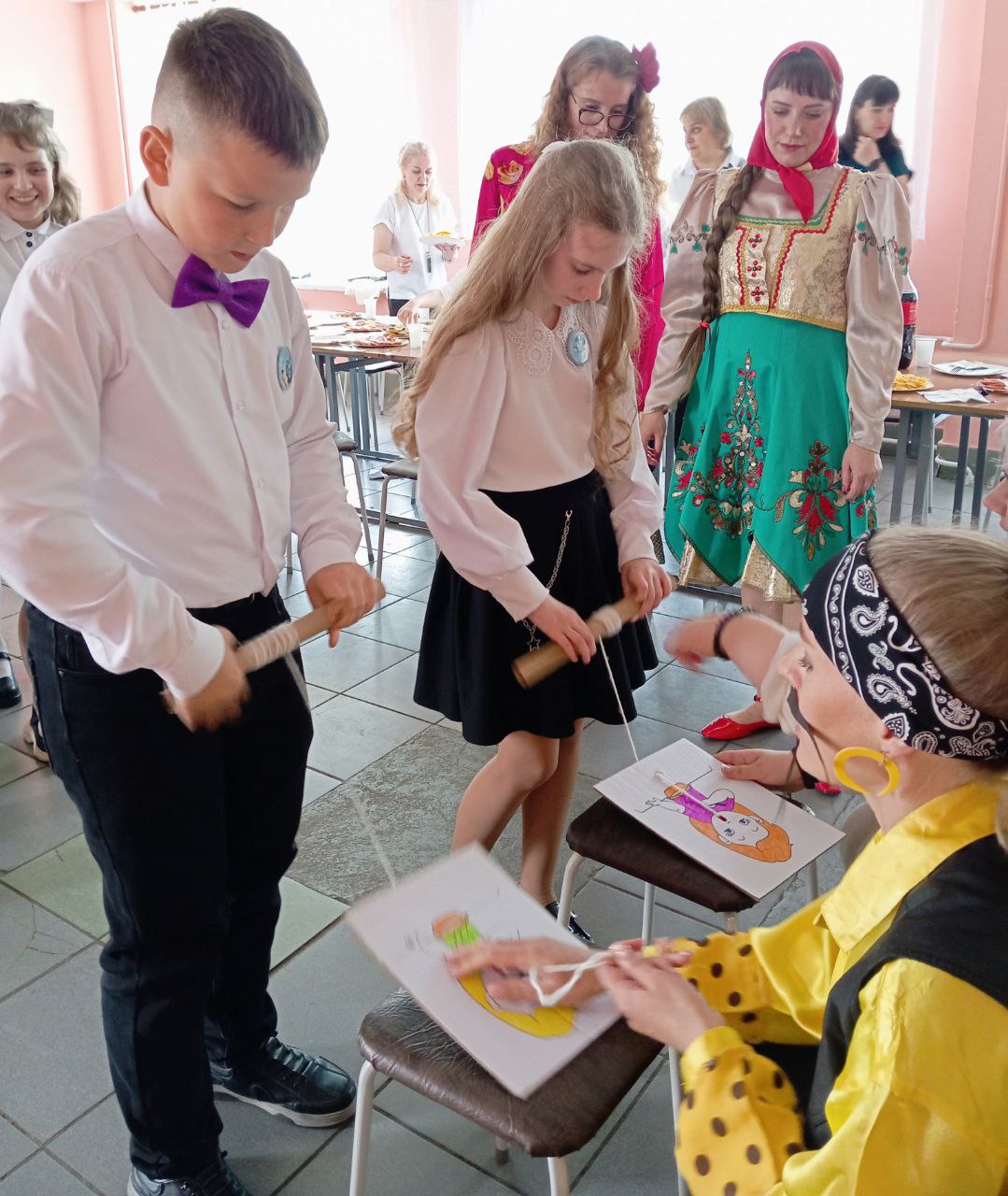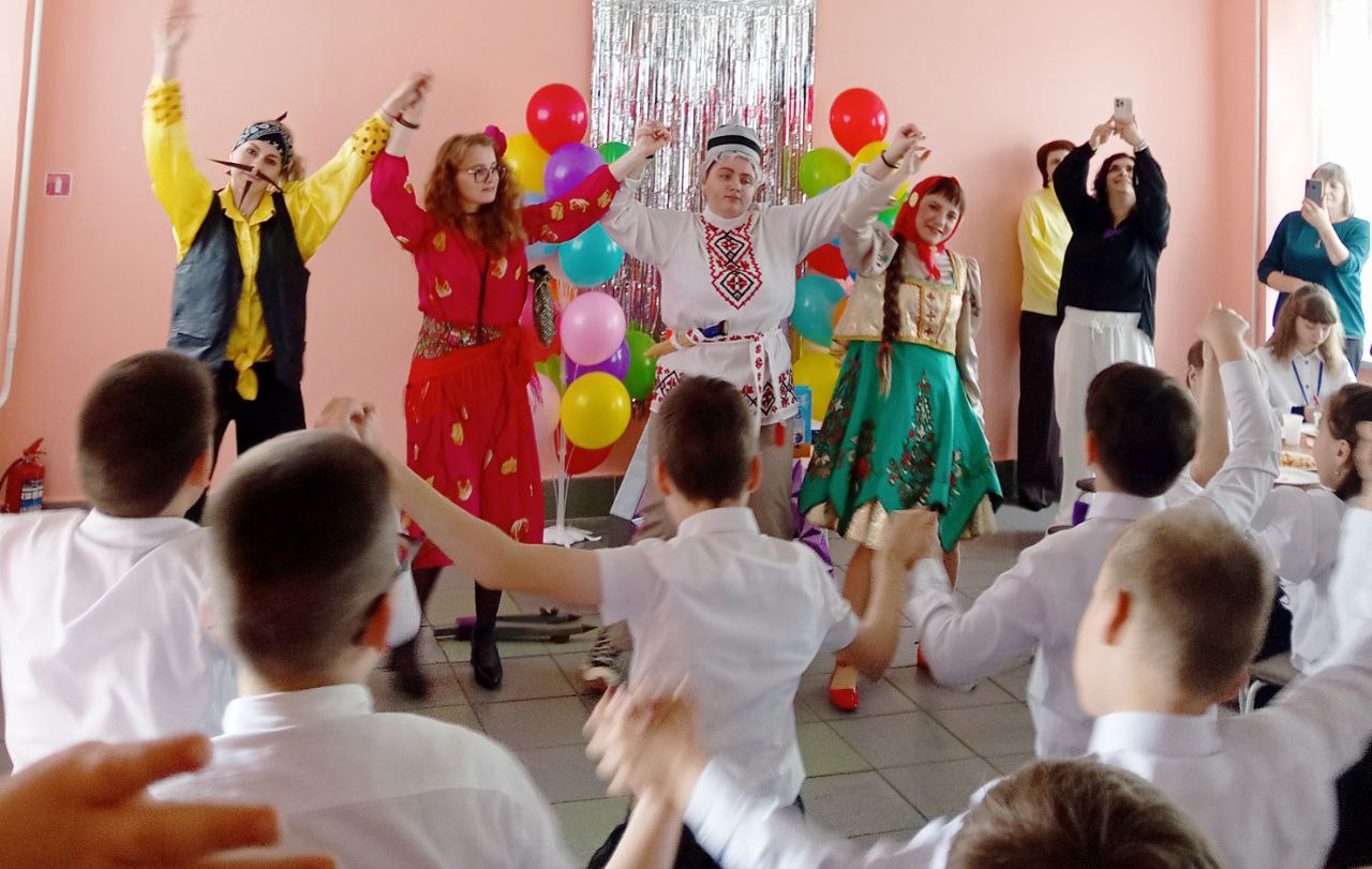 Сотрудники центральной районной библиотеки подготовили для юных выпускников театрализованное шоу-программу «Путешествие во времени. Алёша и его друзья». Все участники отправились в увлекательное путешествие со сказочными героями – русским богатырём Алёшей Поповичем, его верной подругой Любавой, конем Юлием. На пути в царство коварного Соловья-разбойника, который украл праздничные подарки, ребят ждали зажигательные танцы, цыганские предсказания, веселые конкурсы, викторины, загадки, флешмоб.
