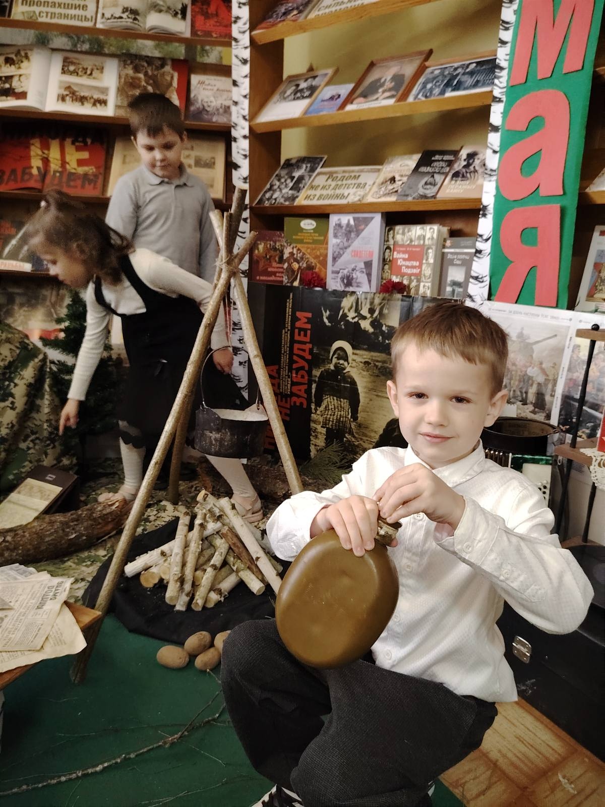 Взрослые и дети активно участвовали в поэтическом марафоне «Строки, опаленные войной», где звучали стихи К. Симонова, Р.Рождественского, Э. Асадова и т.д. Библиотекари всех гостей праздника приглашали на полевую кухню, где угощали гречневой кашей.