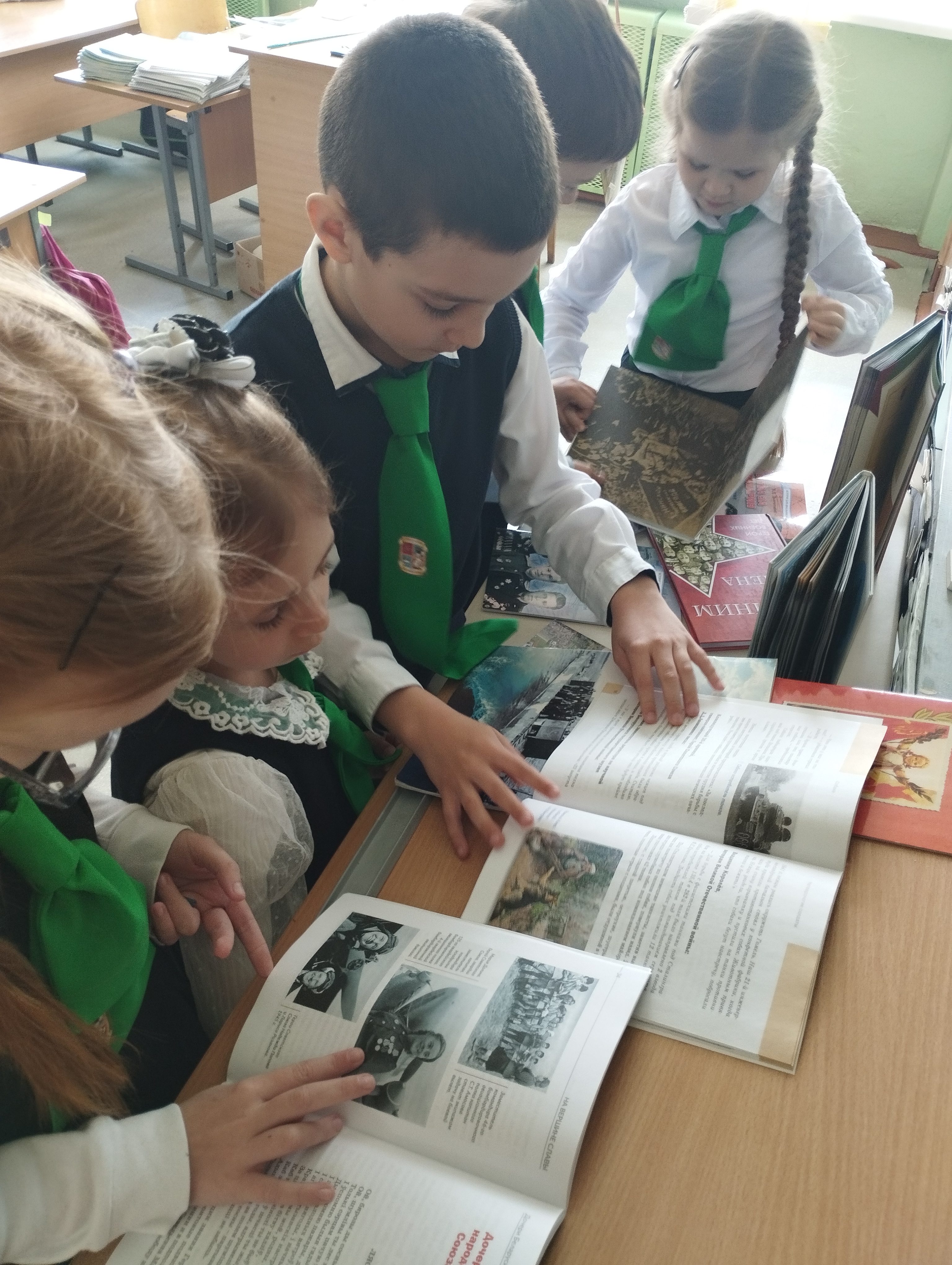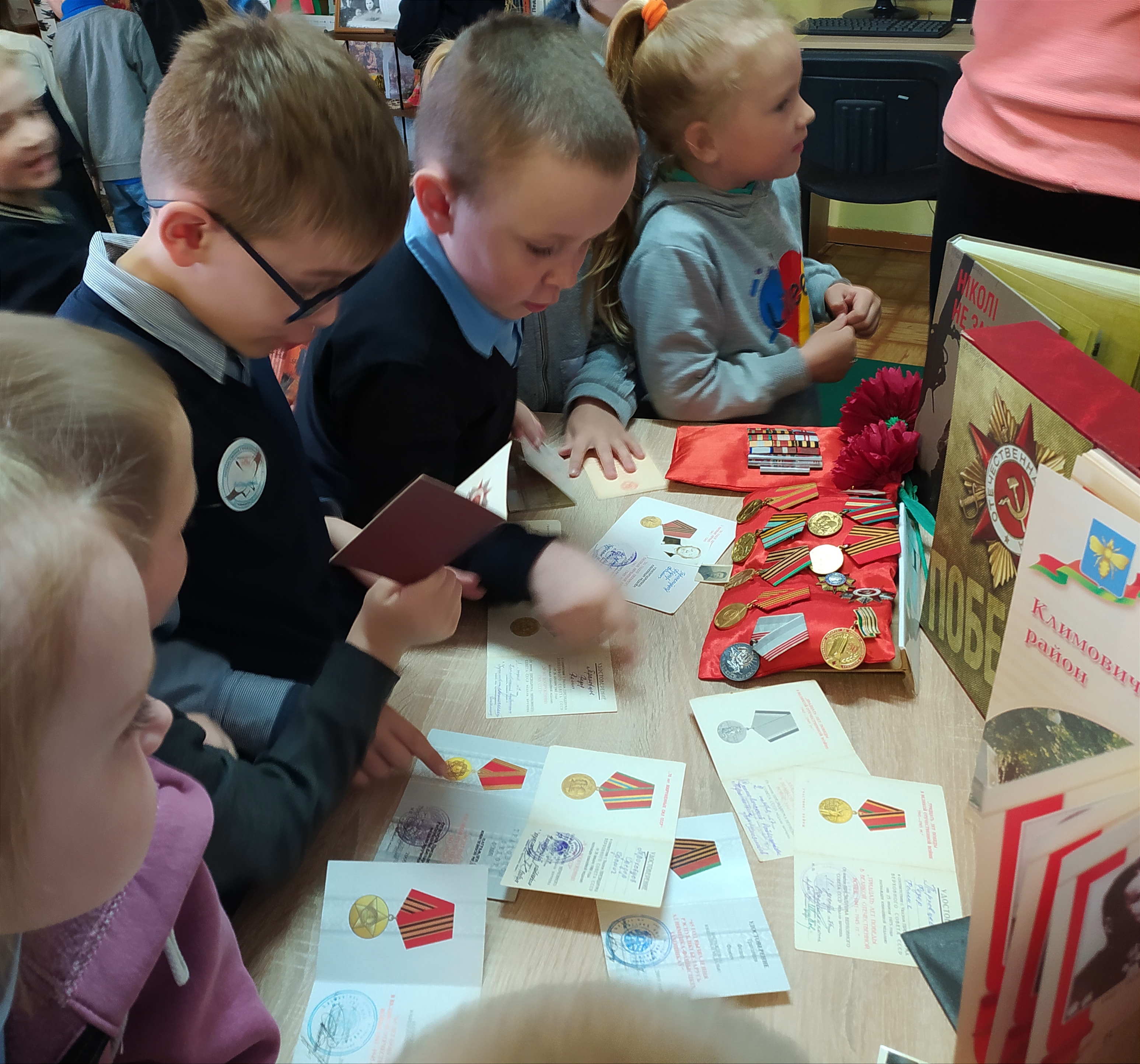 Для первоклашек из средней школы №4 в городской библиотеке №1 прошел военно-патриотический час «Великая поступь Победы». Сотрудники библиотеки рассказали ребятам о первых днях войны, о нелёгком пути к Победе, о самом светлом и любимом празднике - Дне Победы. Особый интерес у ребят вызвали истории о мужественных поступках их ровесников в годы Великой Отечественной войны. Не осталась без внимания и книжно-иллюстративная выставка-инсталляция «Минувших лет святая память», на которой представлены не только книги и фотографии, но и атрибутика военных лет: медали, ордена, военные письма и многое другое.