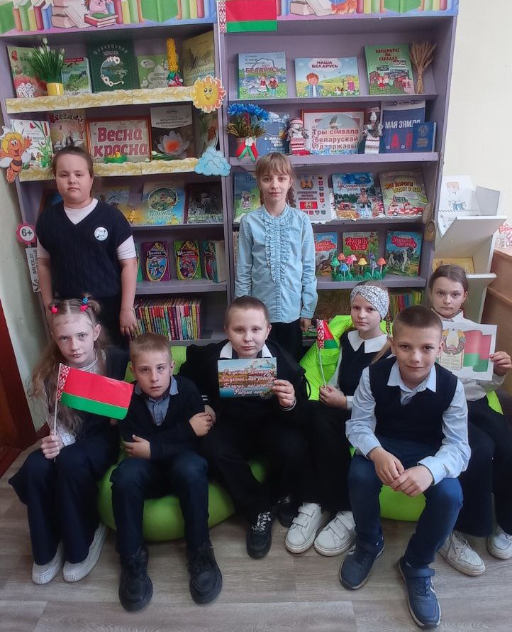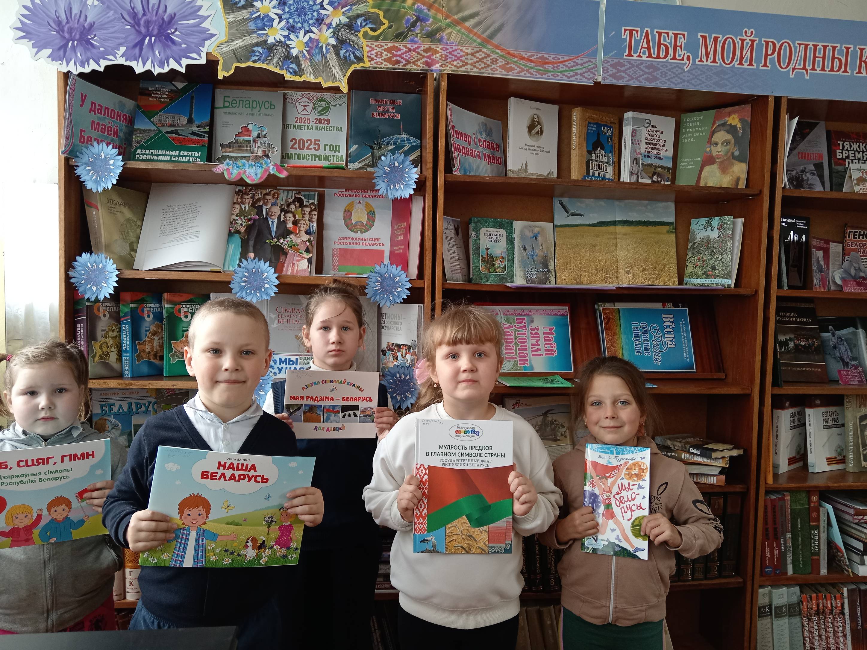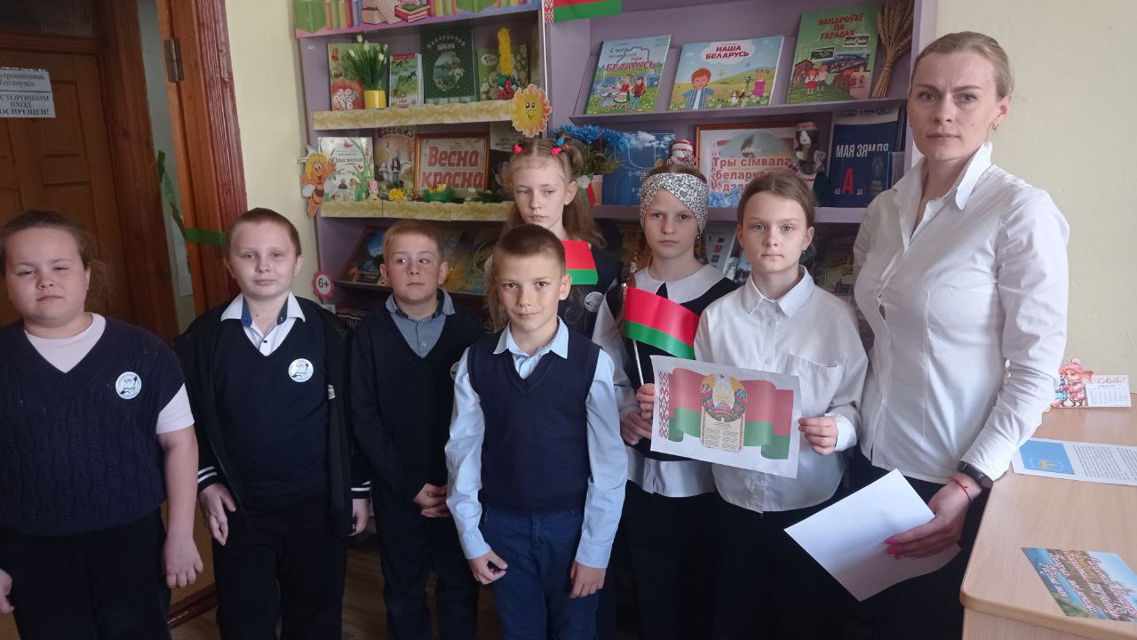 В Родненской библиотеке для ребят младших классов сельской школы прошел час полезной информации «Символы белорусской вечности». На мероприятии говорили о пути становления, развития и утверждения государственных символов, о смысле и значении различных элементов герба, цветов и орнамента белорусского флага.