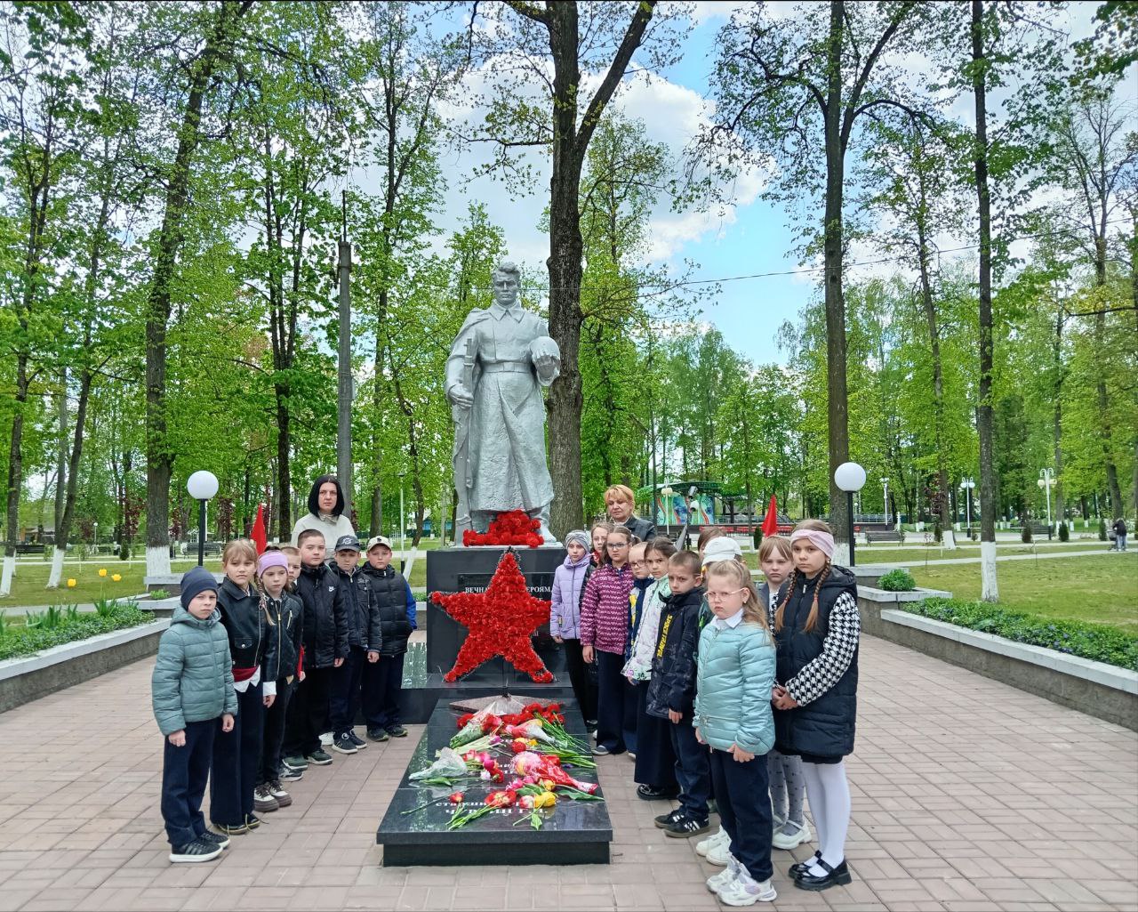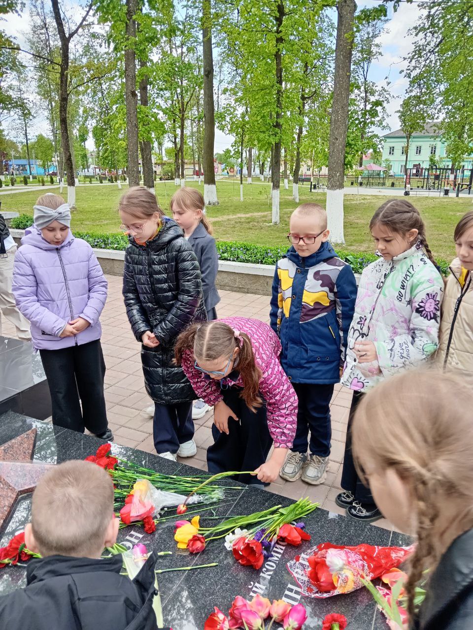Дети почтили память павших героев минутой молчания и возложили цветы.