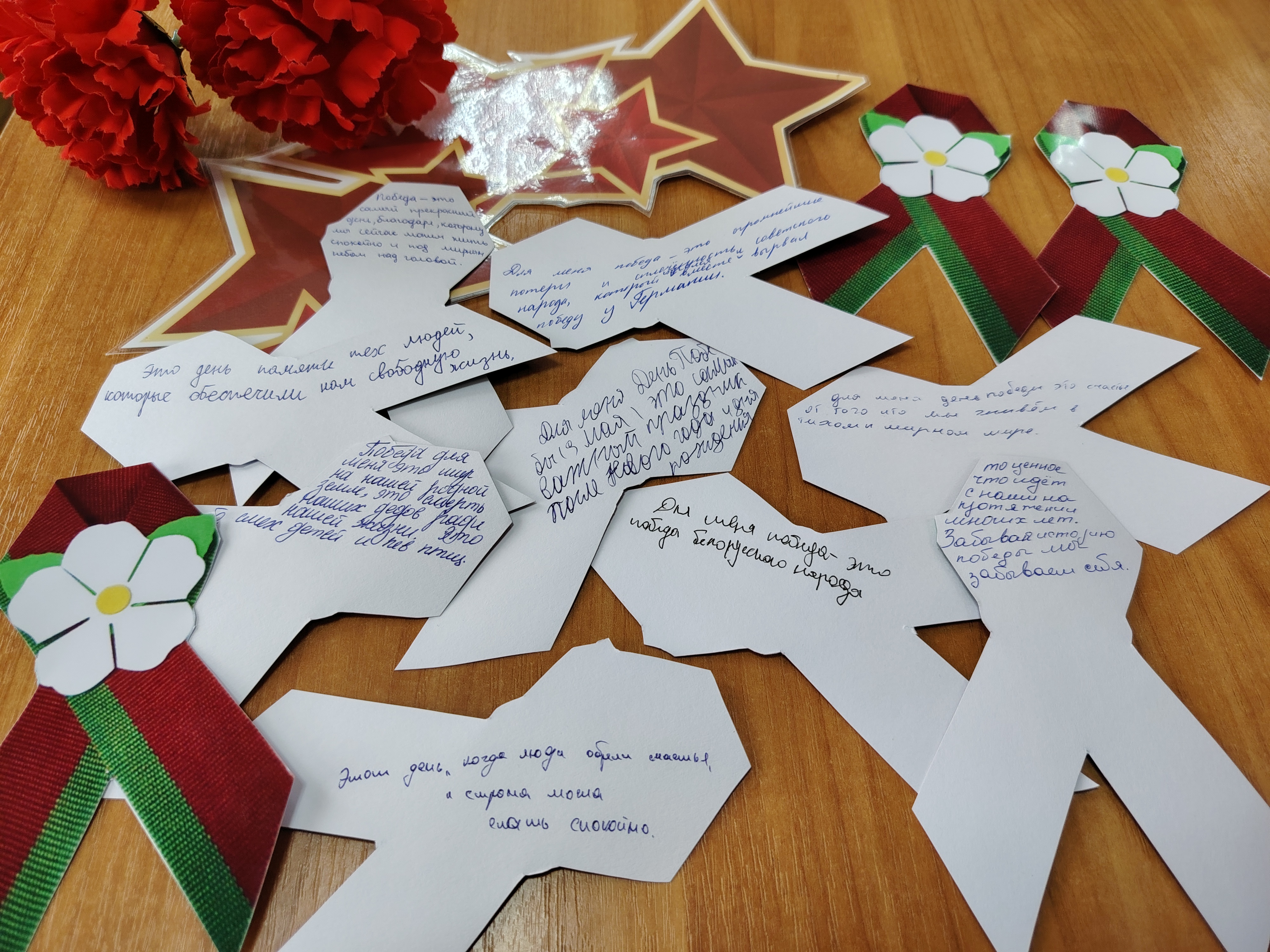 Своим мнением о значимости праздника подростки поделились, написав на эмитированных бутоньерках - символе Дня Победы - «Для меня День Победы – это…».