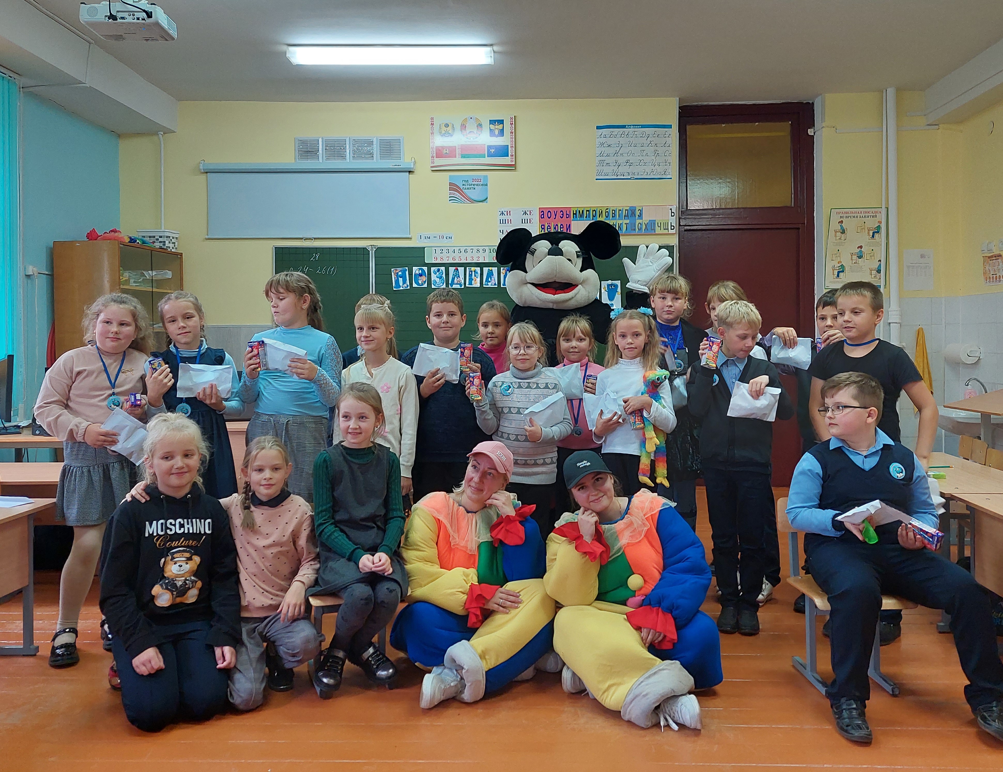 А какой же праздник без игр? В этот необычный день дети вместе со Смешинкой и Веселинкой приняли участие в веселых конкурсах и играх: «Самый сильный», «Волшебная шляпа», «Воздушное пирожное». Веселинка научила именинников жонглировать, а Смешинка поздравляла стихотворением собственного сочинения. Специальным гостем на празднике стал Микки Маус, который поздравил ребят и пожелали им здоровья, успехов в учебе и отличного настроения. Кульминацией праздника стала беспроигрышная лотерея: ребятам вручили лотерейные билеты и каждый получил приятный памятный подарок.