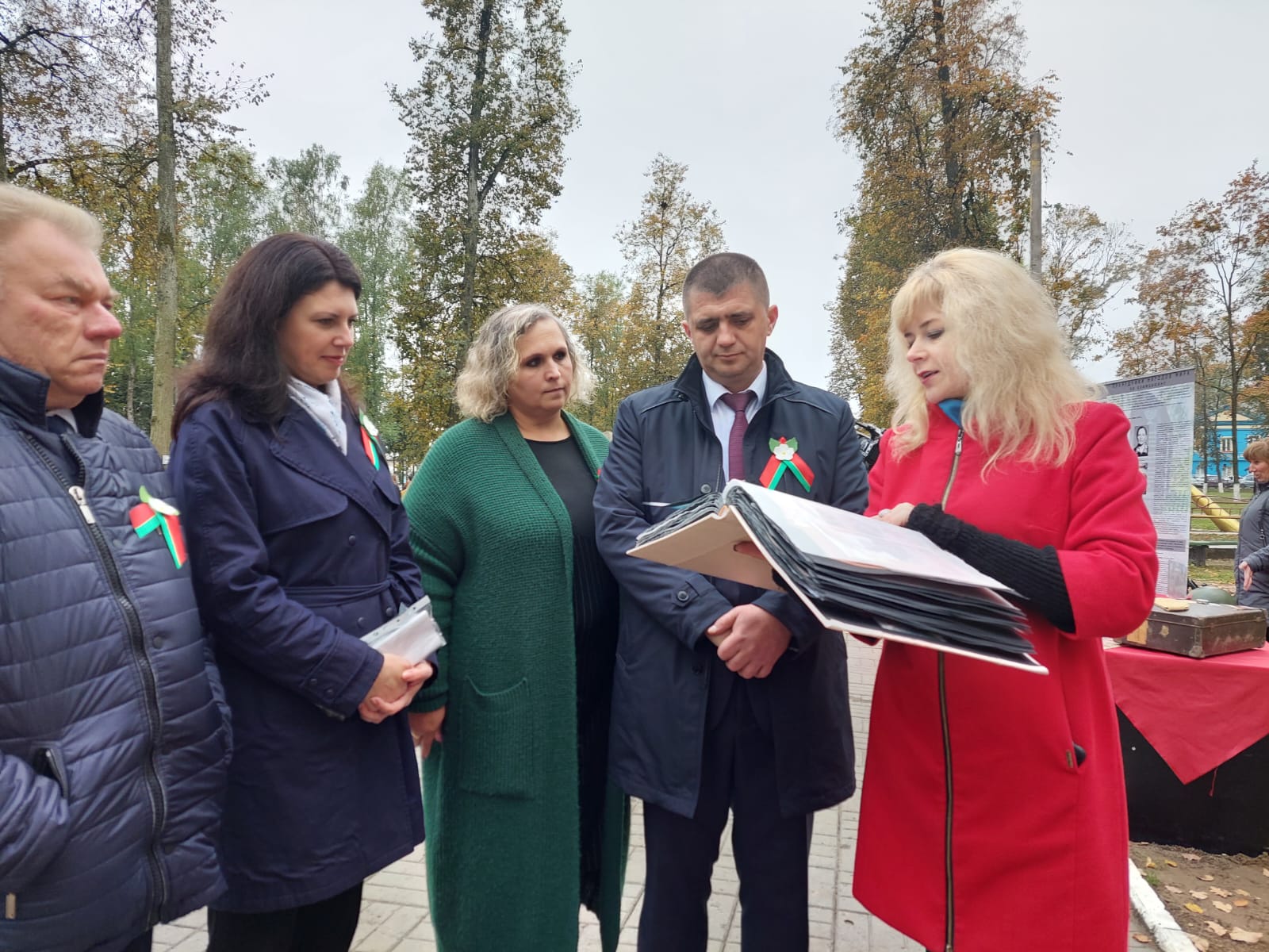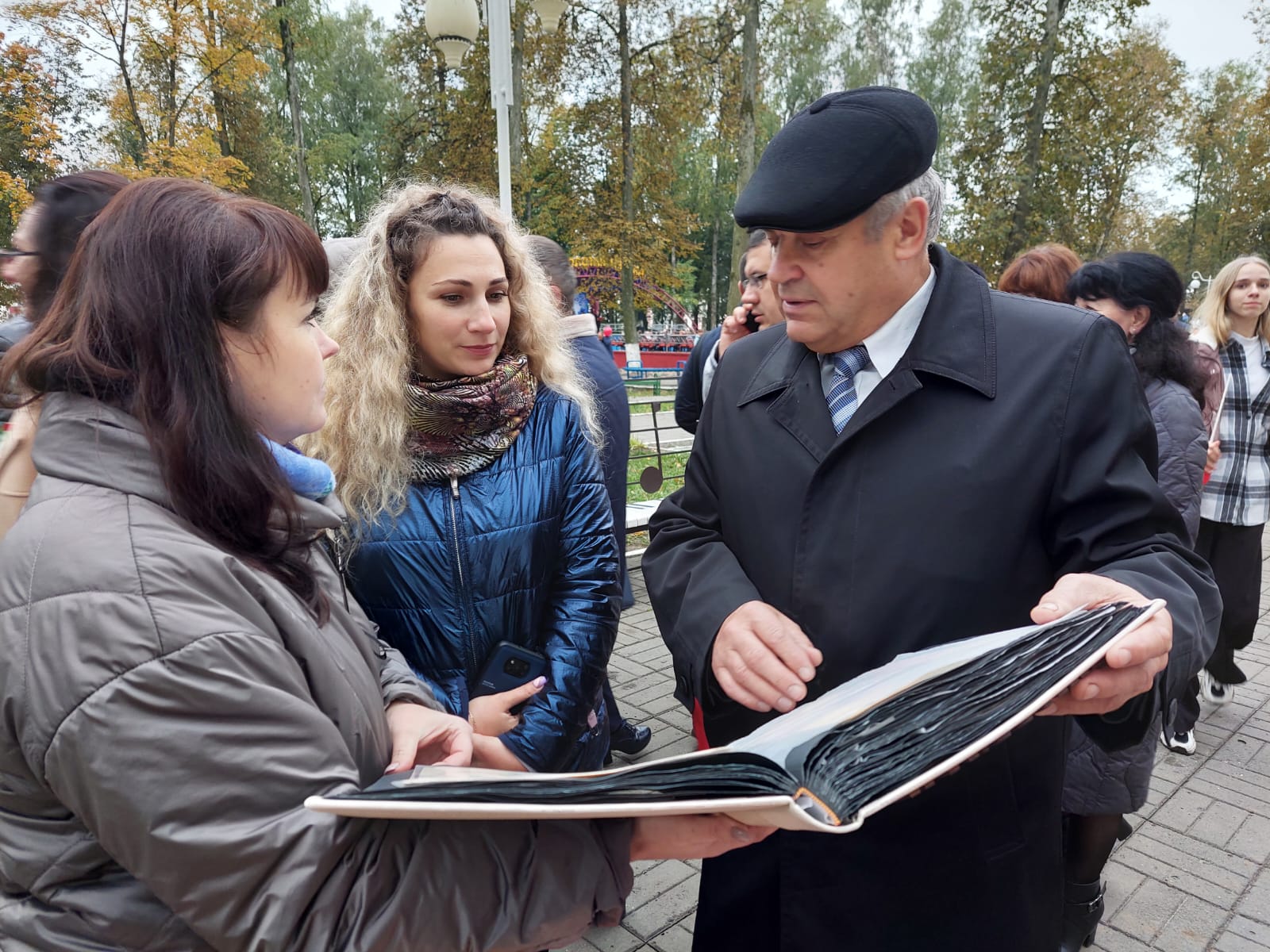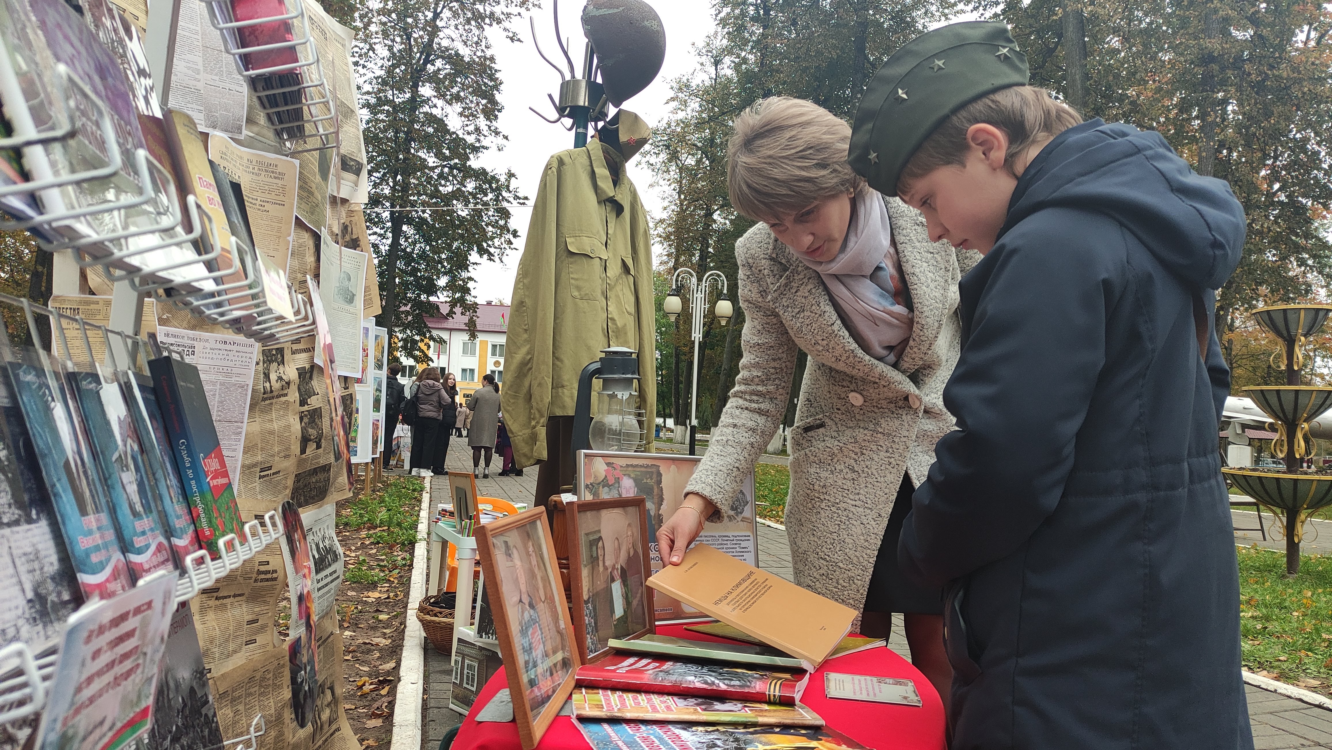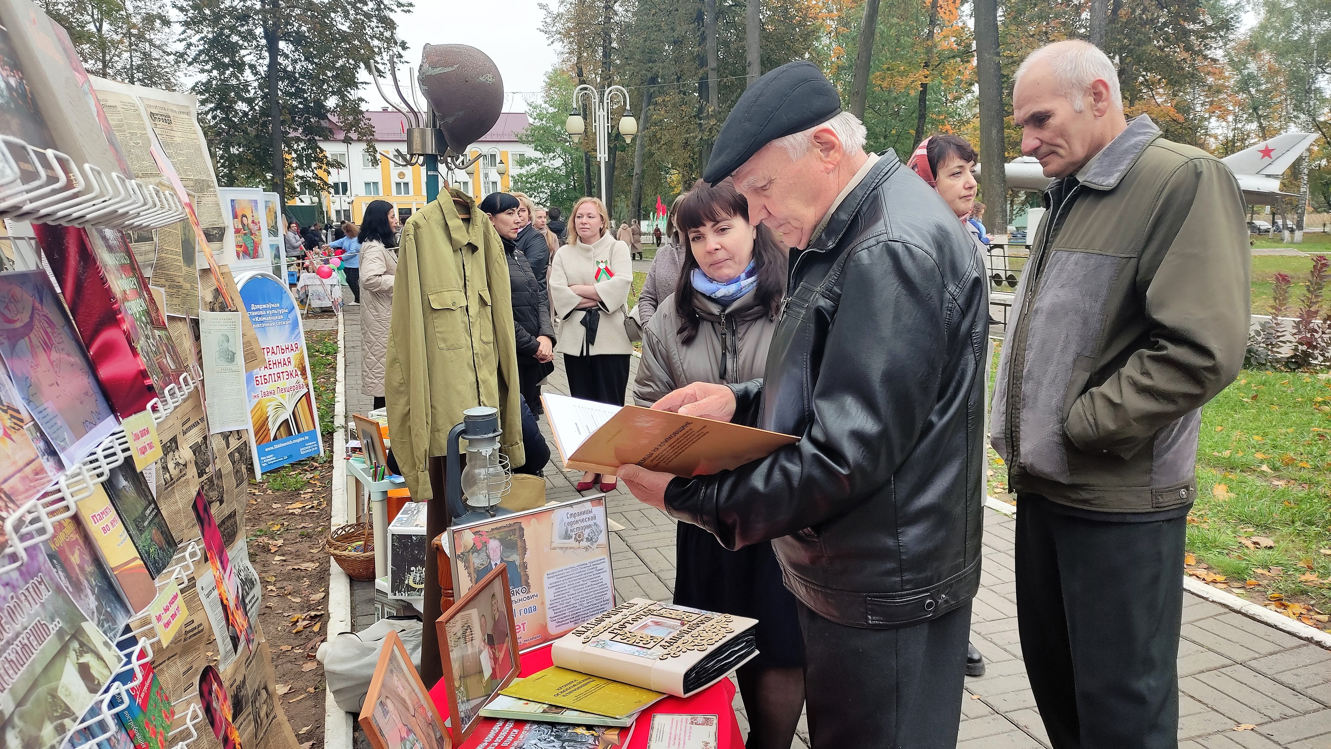 В городском парке сотрудники центральной районной библиотеки организовали литературную площадку «Город в зеркале времен и судеб». Здесь были представлены материалы о военных действиях на территории Климовщины, письма ветеранов войны и книги о войне. Особый интерес вызвали альбомы с материалами по патриотическому воспитанию – итог поисковой работы библиотек района.