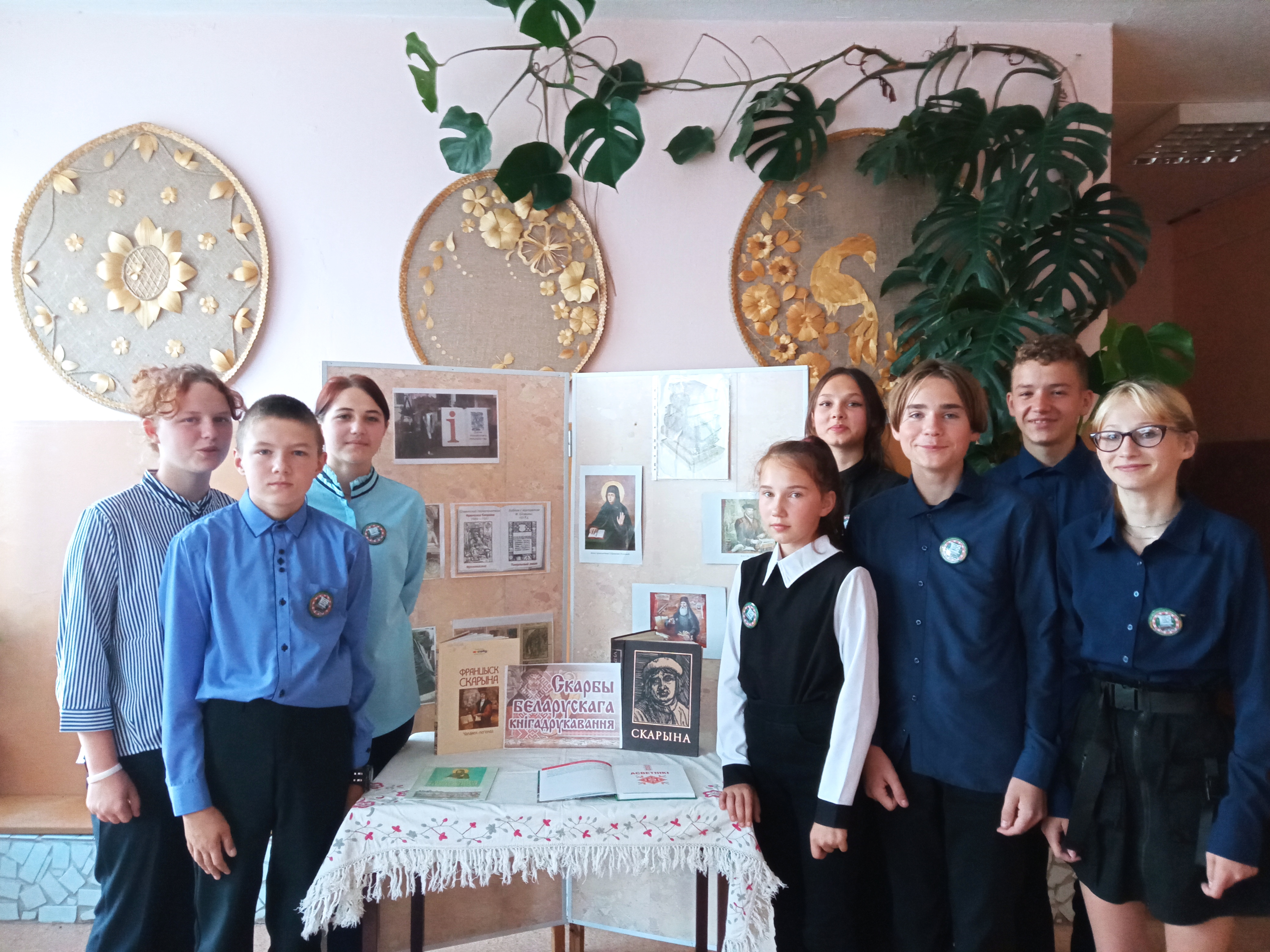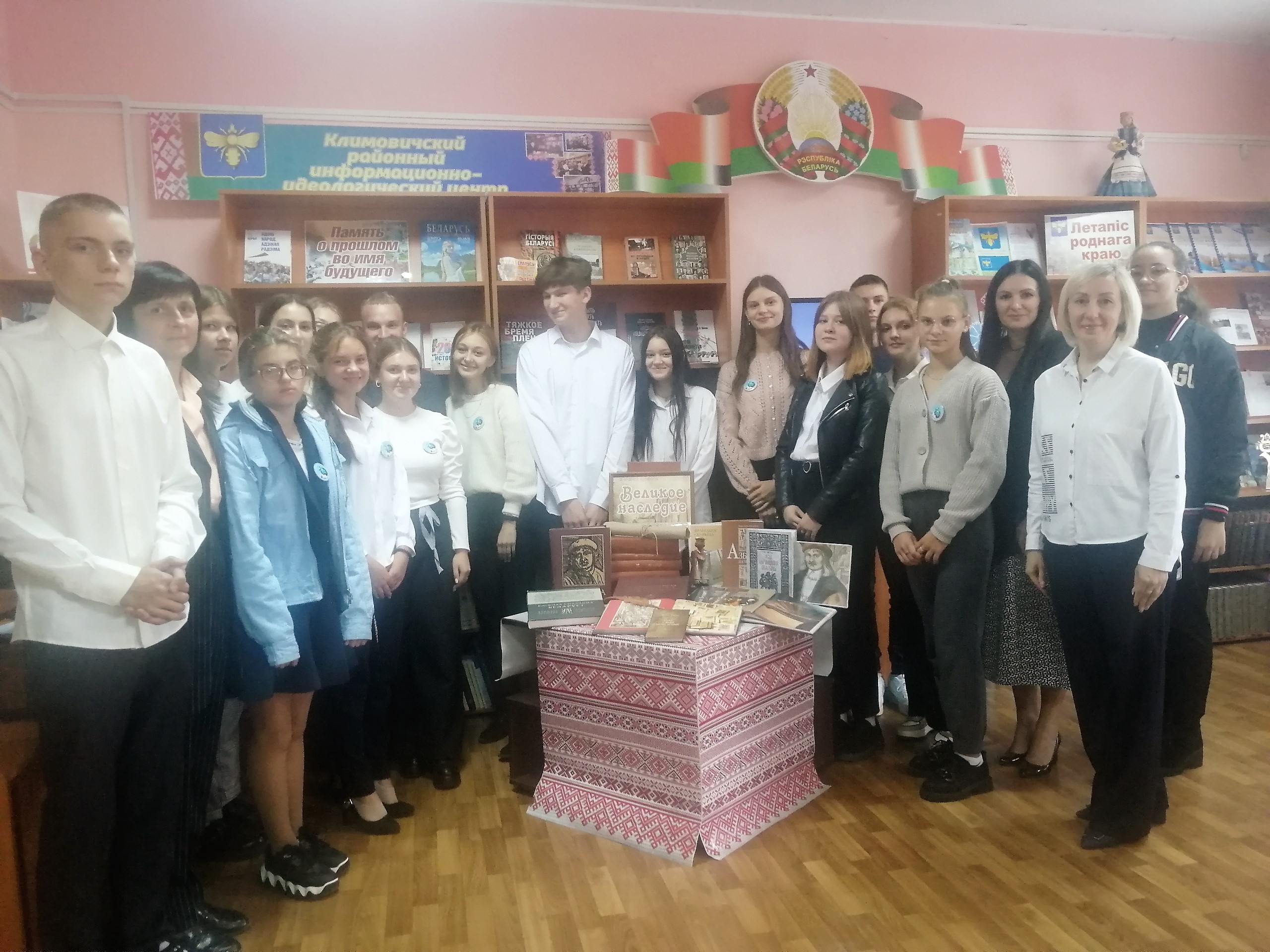 Да мерапрыемства была падрыхтавана выстава-прысвячэнне “Вялікая спадчына”, на якой былі прадстаўлены кнігі пра вядомых гуманістаў-асветнікаў. Навучэнцы з цікавасцю знаёміліся з матэрыяламі кніжнай выставы.