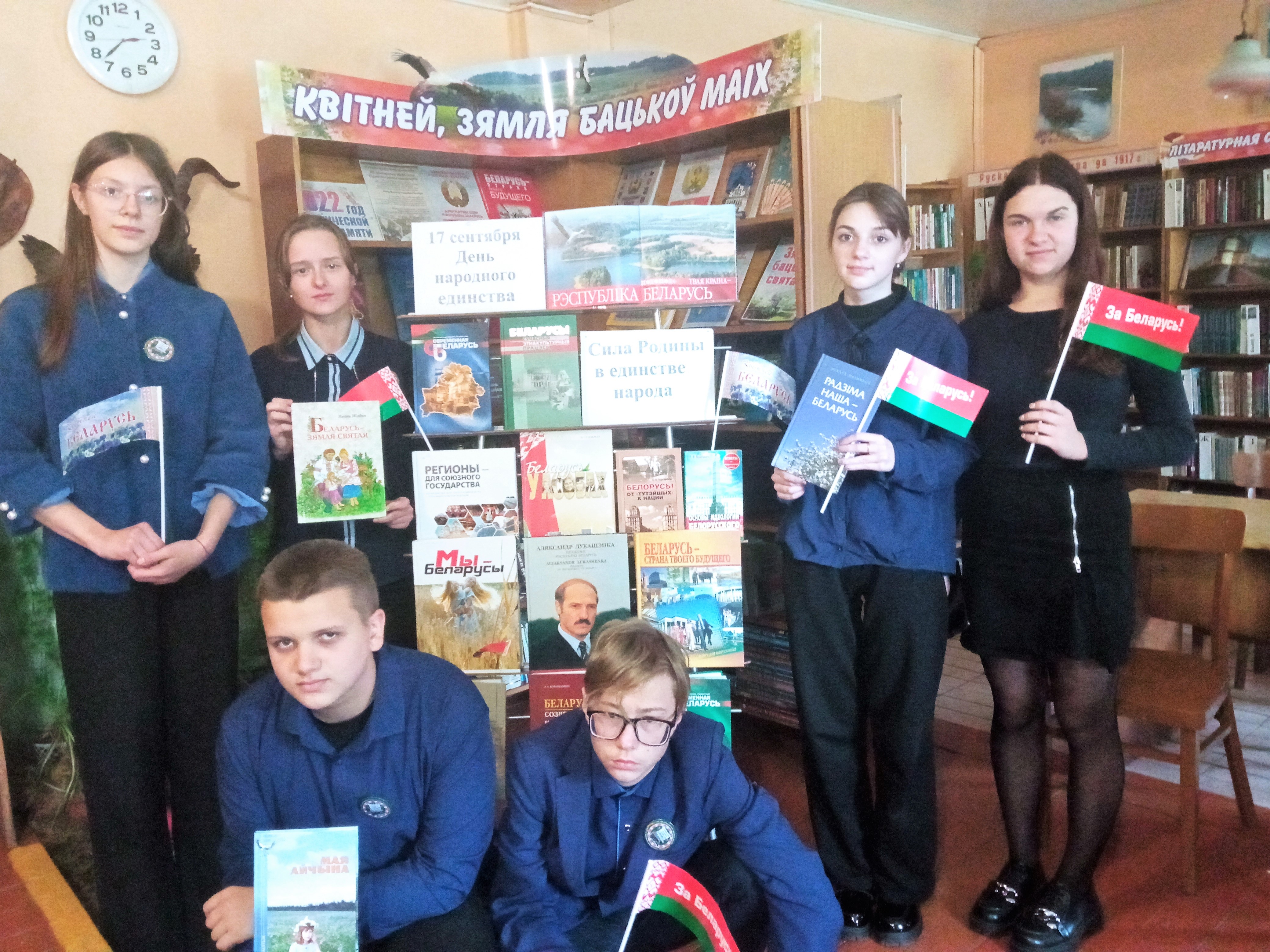 Для привлечения подрастающего поколения и молодежи к чтению и осмыслению литературы патриотической направленности в Тимоновской сельской библиотеке прошла гражданско-патриотическая акция «Мы – один народ, у нас одна страна». Ребята познакомились с литературой о суверенной Беларуси и ее истории, говорили о культуре и традициях белорусского народа.