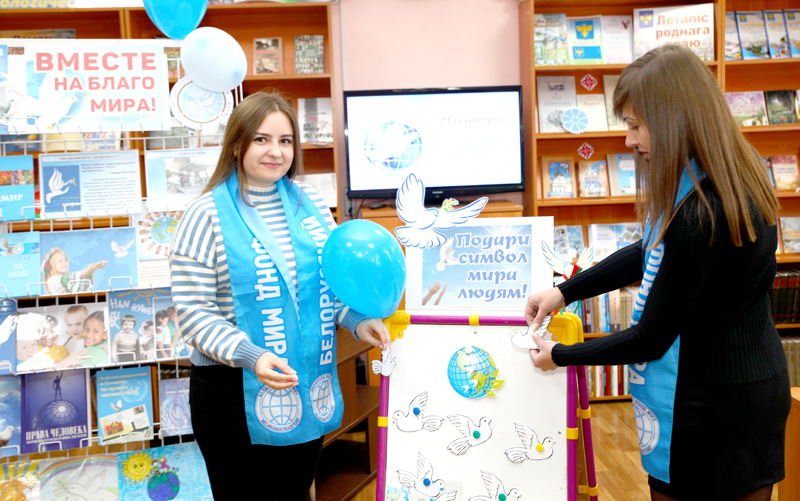 В рамках Недели мира центральная районная библиотека совместно с районной организацией ОО «Белорусский фонд мира» организовали и провели акцию «Вместе на благо мира!». На бумажных голубях каждый желающий мог выразить своё отношение к миру в виде изображения или короткой записи, а заодно и осмыслить свою роль в укреплении и сохранении мира.