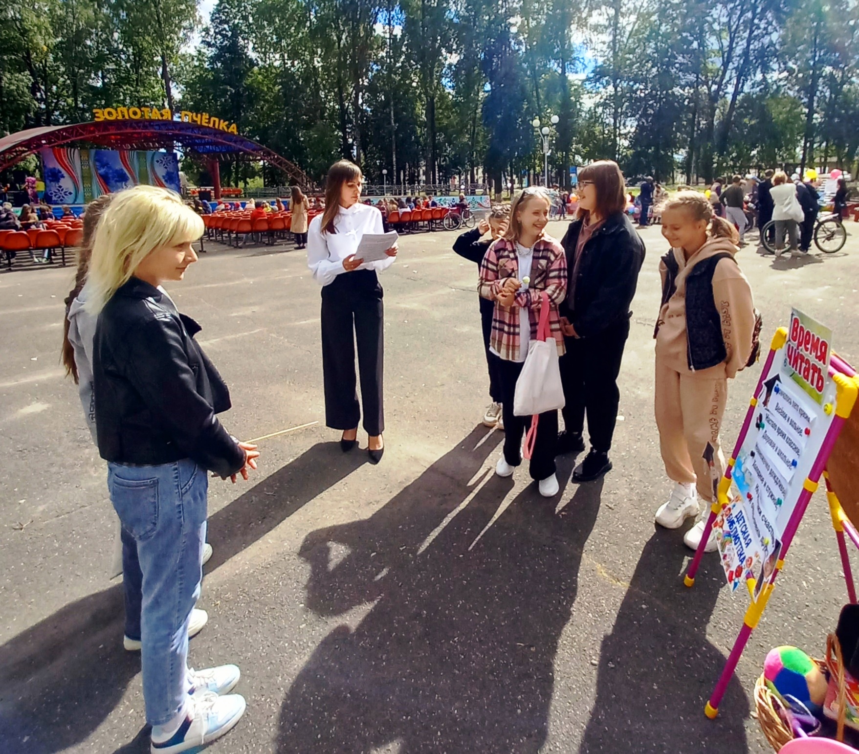 1 сентября в День Знаний в городском парке прошел праздник «До скорой встречи, солнечное лето!». Сотрудники отдела по обслуживанию детского читателя центральной районной библиотеки имени И. Пехтерева организовали для детей интерактивную площадку «И снова в школу». Ребята путешествовали по стране Знаний, полной загадок и открытий. Всем известные школьные правила прозвучали в стихотворной форме, а «Вредные советы» от любимого детского поэта Г. Остера всех повеселили.
