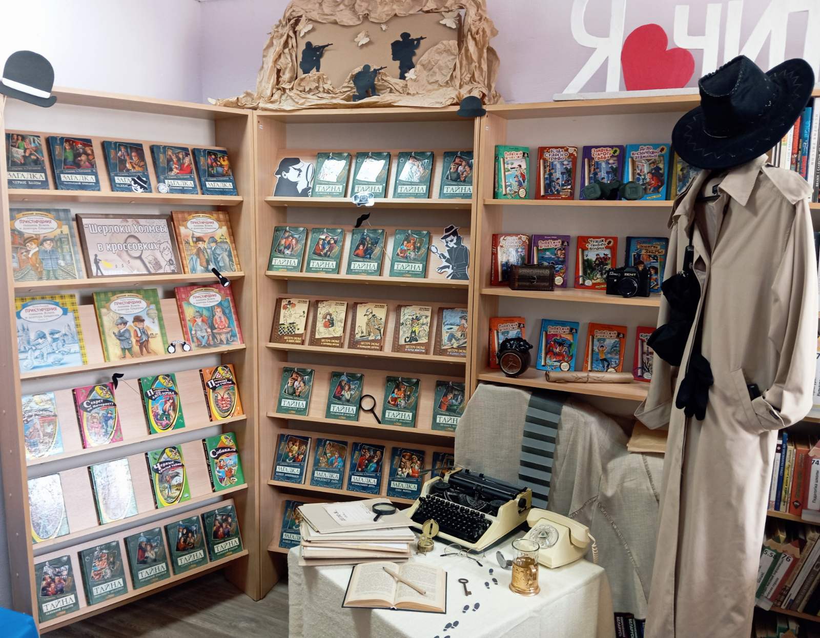 Для гостей были подготовлены интересные площадки: для всех желающих попробовать себя в роли настоящего сыщика агентства «Тайн НЕТ» был подготовлен квест «Расследование под прицелом», который до конца прошли самые умные, внимательные и любознательные. Итогом квеста с стало вручение удостоверения настоящего детектива. Помочь посетителям проникнуться историей военных лет помогла имитация комнат военного и послевоенного времени «Загляни в 45-й». Гости смогли продегустировать настоящий фронтовой хлеб, прослушать граммпластинку с записями военных песен, узнать историю родственников сотрудников библиотеки, которые воевали на фронтах Великой Отечественной войны, фотографии и вещи которых были представлены на инсталляции «Мы память бережно храним». На этнической площадке Белорусочка и Купалинка рассказали гостям об элементах национальной одежды, роли рушника и самотканого пояса в жизни белорусов, а также познакомили с наиболее интереснывми персонажами белорусской мифологии книги «Чароўны свет: з беларускіх міфаў, паданняў і казак». Почувствовать национальный калорит помогли разнообразные игры и задания. Этнографический уголок «Традыцыйная культура беларусаў» презентовала Ирина Новогродская. Мастер-класс по изготовлению свечей из вощины провела Дарья Строгонова. Коллекцию «Мир куклы Барби» демонстрировала Инна Кордабнёва. Большое внимание самых маленьких участников библионочи привлёк живой уголок с кроликами.Музыкальная программа была представлена семьёй Мыкольниковых, чей живой вокал, исполнение как авторских песен, а также песен под гитару на заказ, никого не оставил равнодушным – все дружно подпевали знакомым и любимым песням.