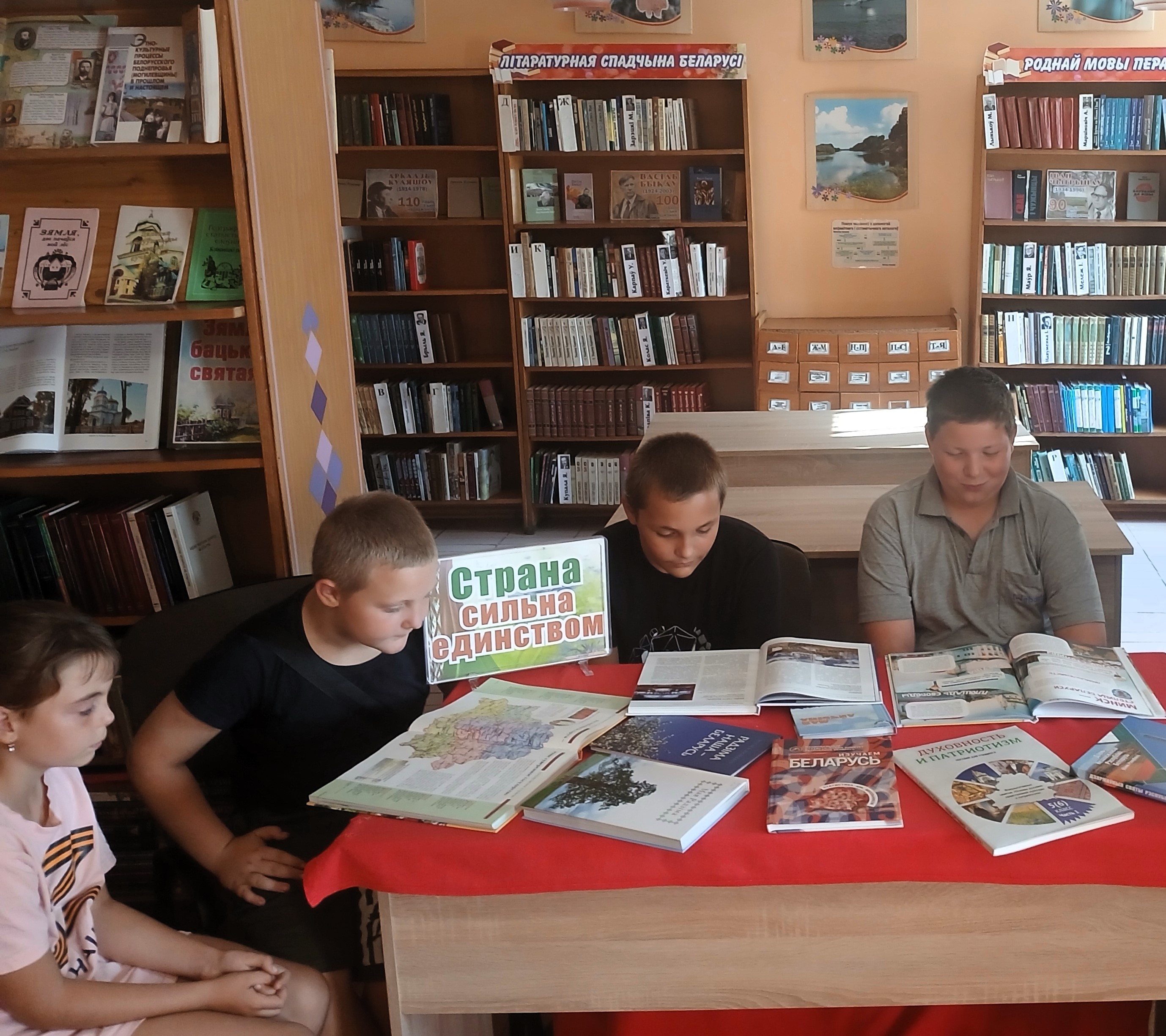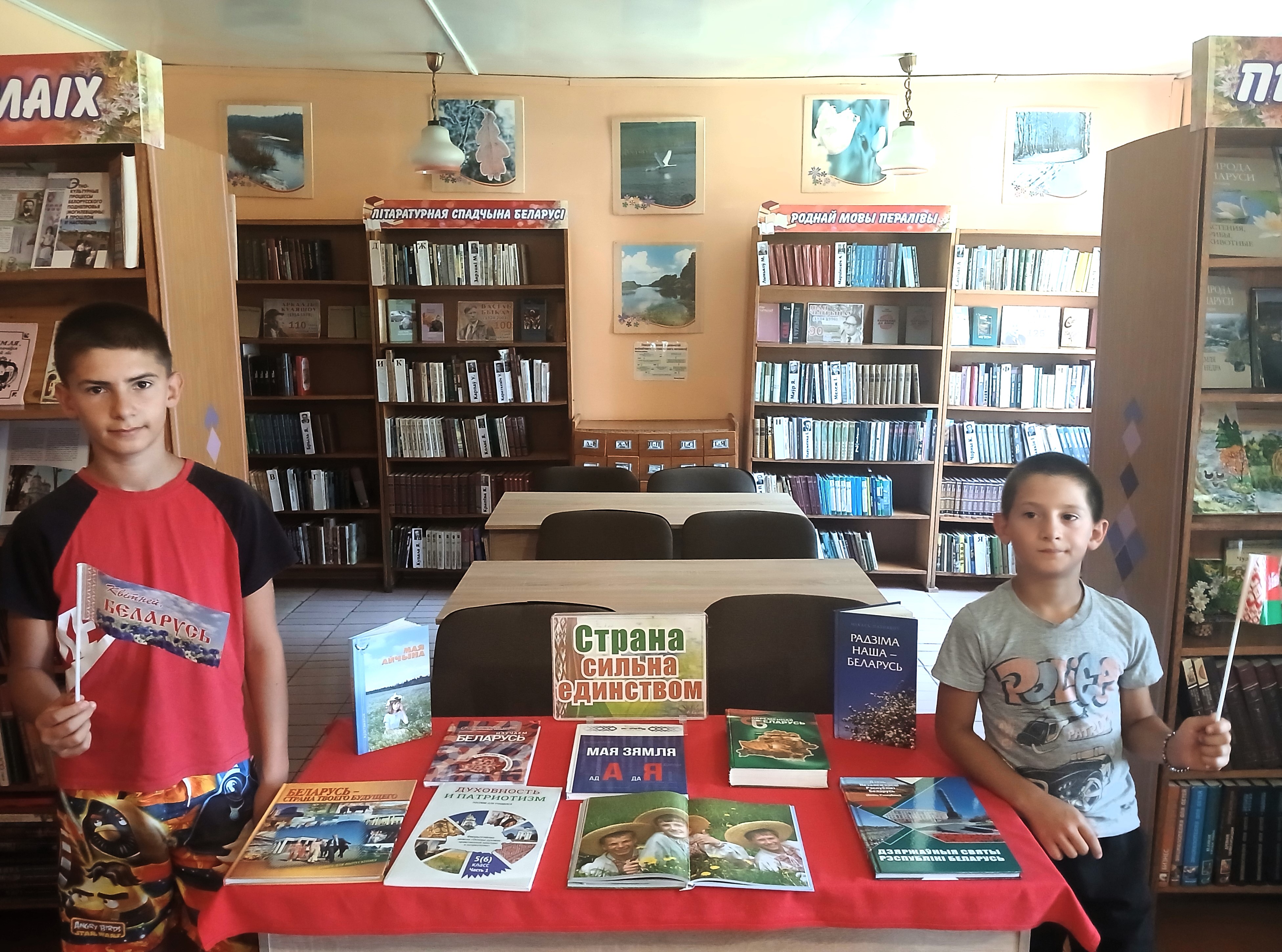 В библиотеке агрогородка Милославичи с учащимися средней школы прошла информационная минутка «Единство белорусского народа». Мальчишки и девчонки смогли не только услышать историю праздника, но и ознакомиться с материалами книжной выставки «Вместе мы страна Беларусь», вспомнить, что обозначают цвета Государственного флага Республики Беларусь, а также значения белорусского орнамента на нем.