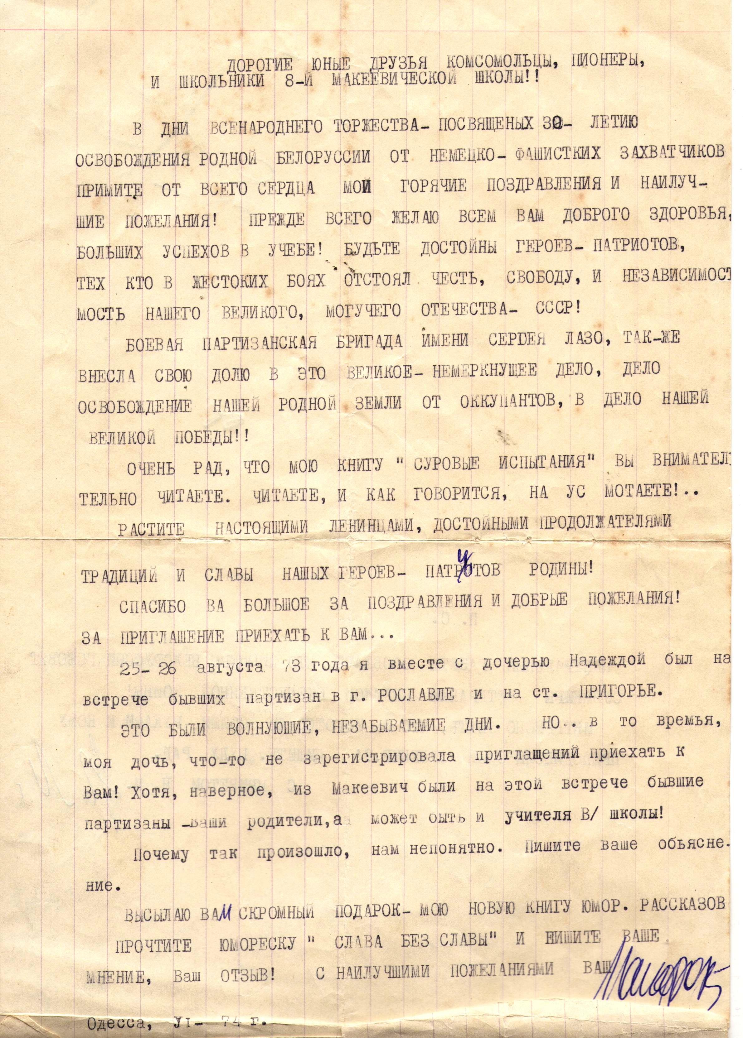 Учителя-партизаны Макеевичской базовой школы