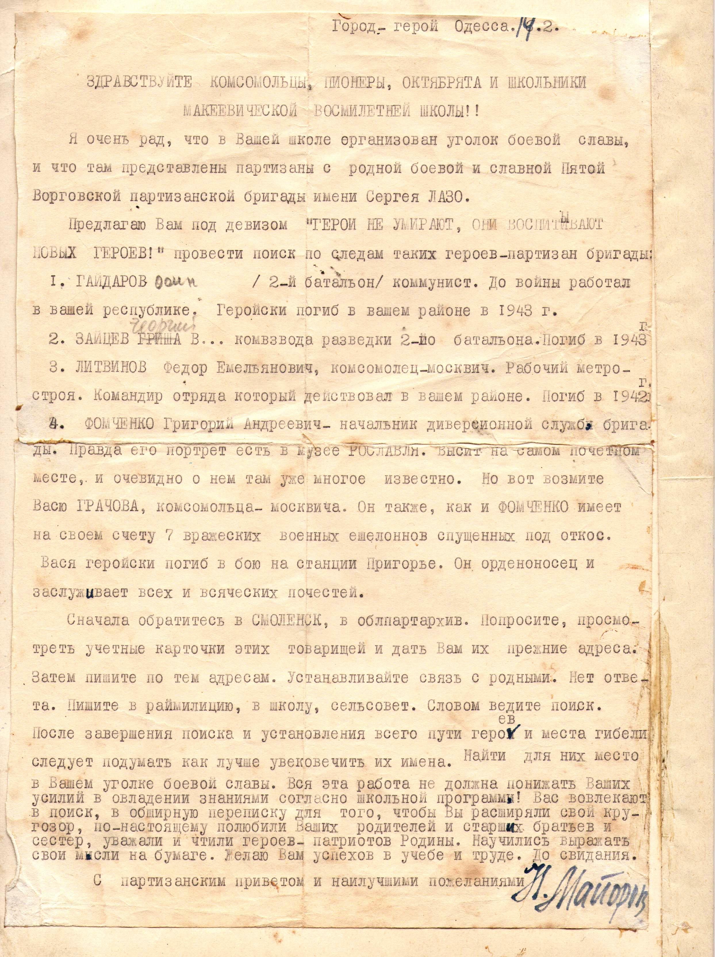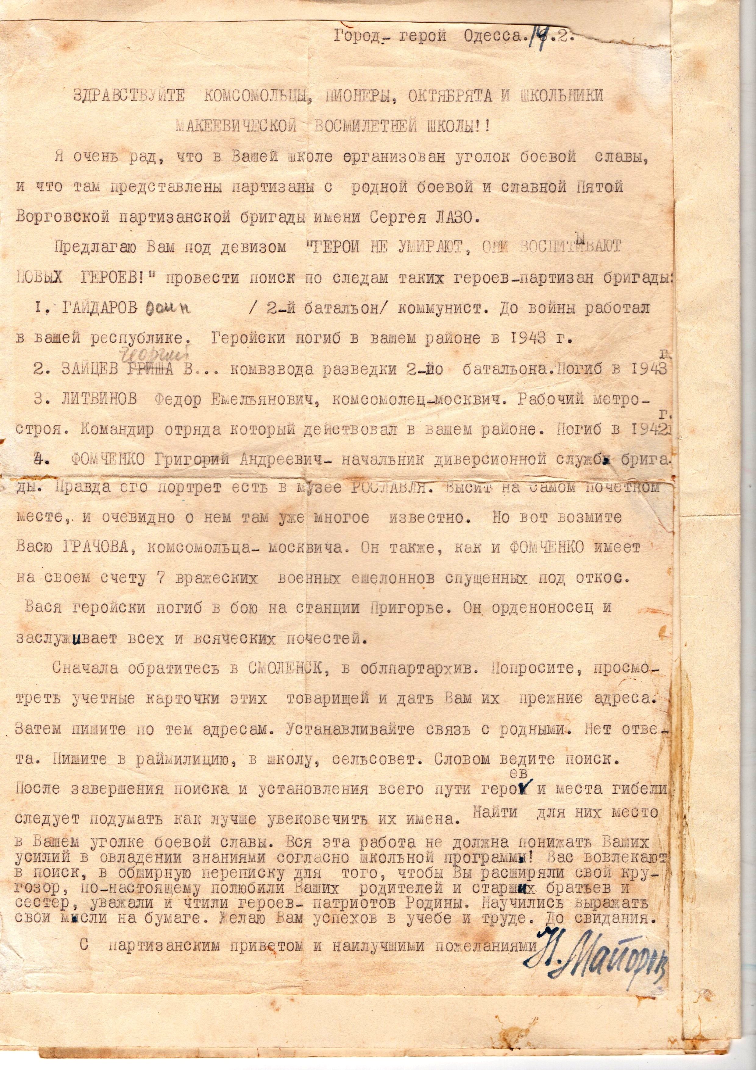 О подвиге и героизме юного разведчика-партизана
