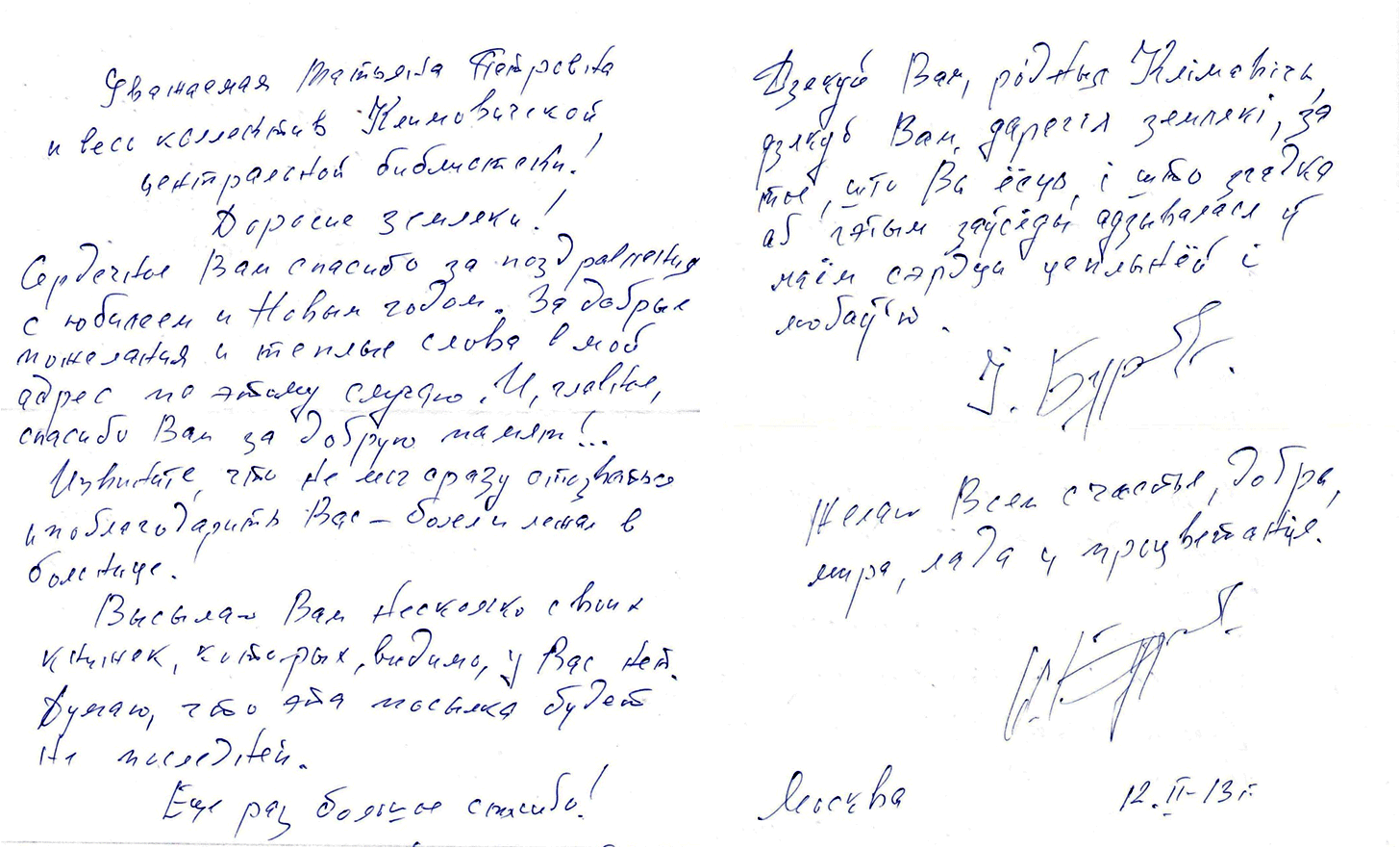 Пісьмо Івана Бурсава калектыву Клімавіцкай цэнтральнай раённай бібліятэкі. Глядзець