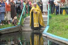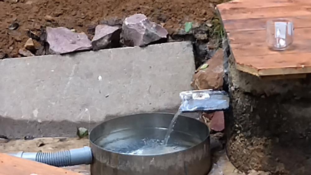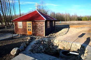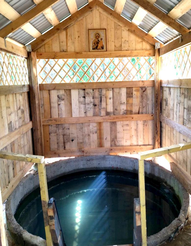 Сейчас это благоустроенное место. Установлены два бетонные кольца, проложен дренаж. Вода весело струится по металлическим желобкам. Площадка зацементирована. Вниз ведет деревянная лесенка. Но и это еще не все. Оборудована также и купель.